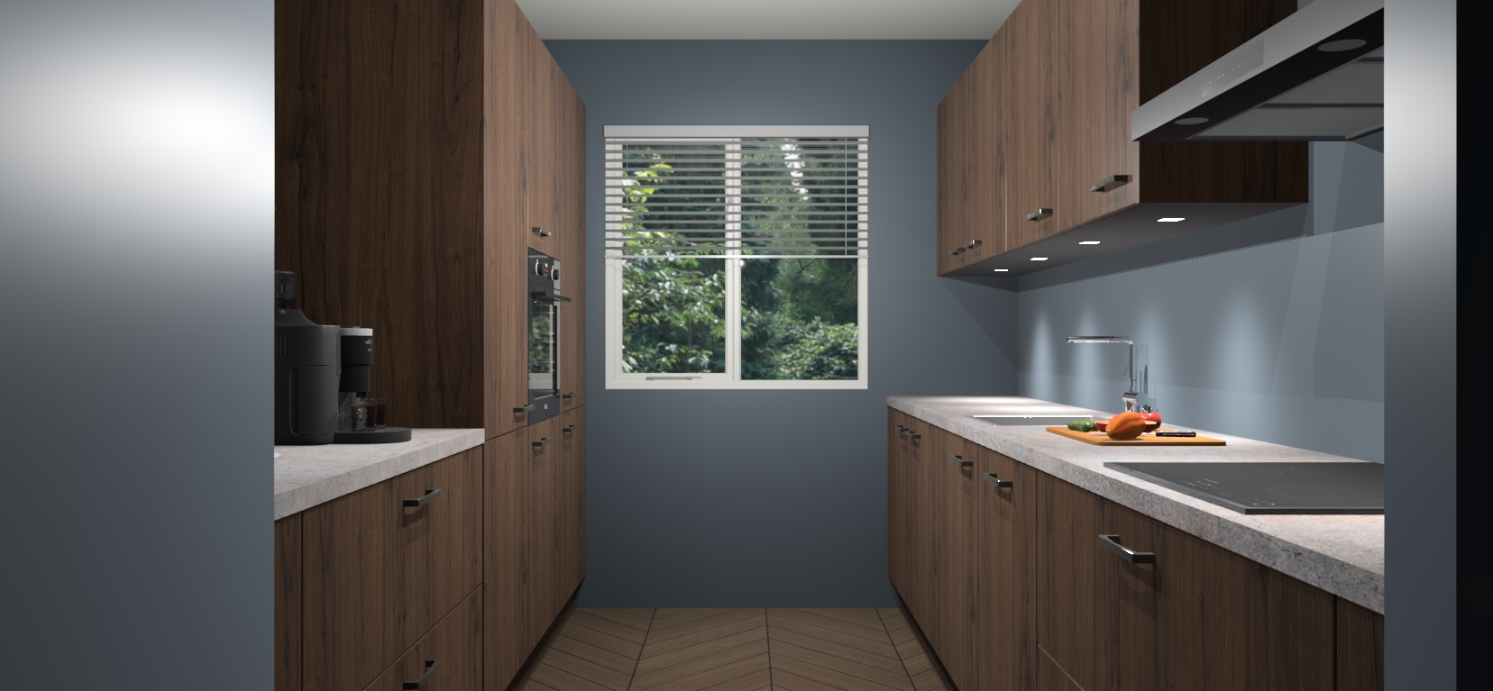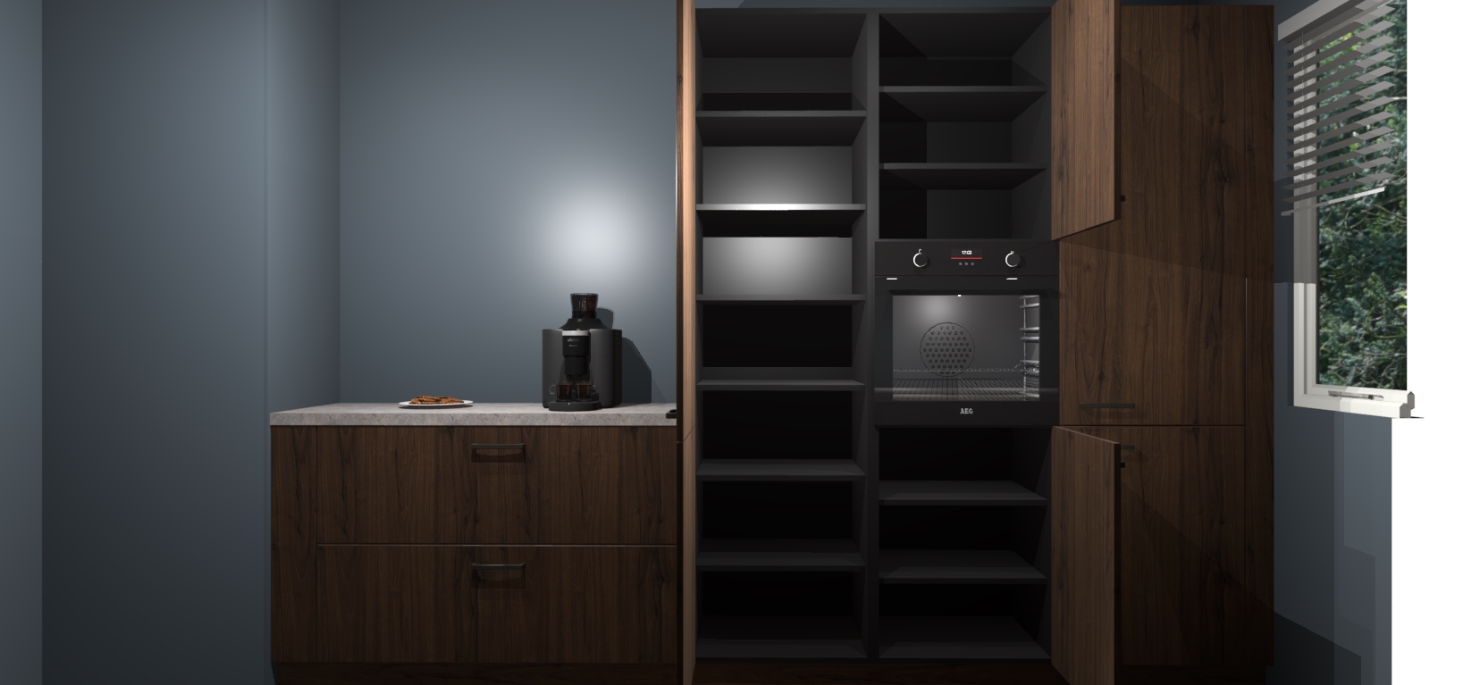 Een stijlvolle en praktische keuken als deze mag gezien worden. Dankzij de prachtige Noten matte afwerking wordt de keuken gemakkelijk het middelpunt van uw huis - hij ziet er geweldig uit onder allerlei lichtomstandigheden, van dag tot nacht!