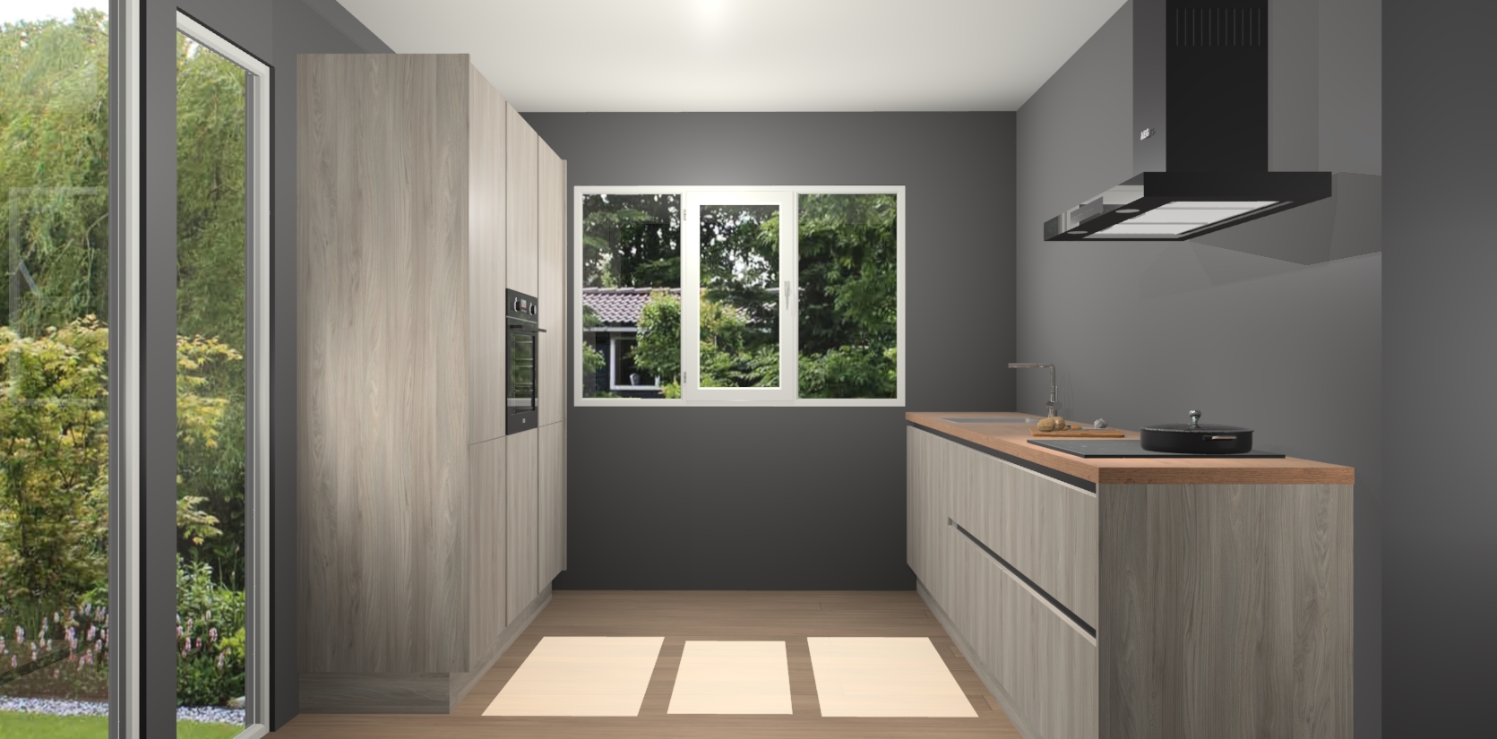 De softclose deuren openen en sluiten is ook heel eenvoudig - geniet van een moeiteloze keukenervaring, zelfs als er kinderen rondlopen. Voor extra gemak bij het plaatsen van uw bestelling bieden we ook een upgrade naar een kookplaat met geïntegreerde afzuiging.