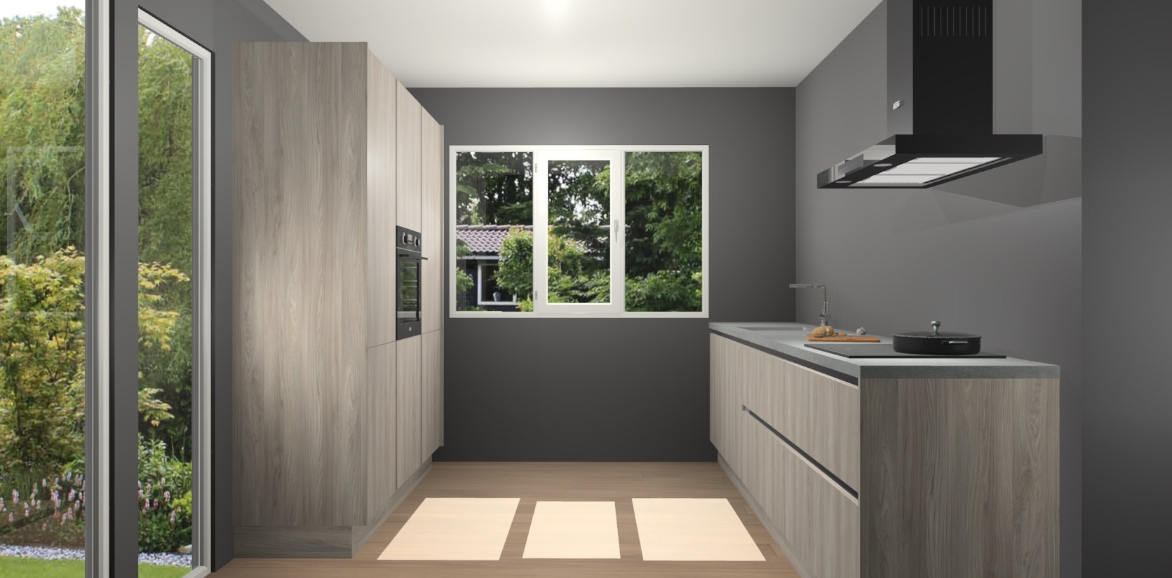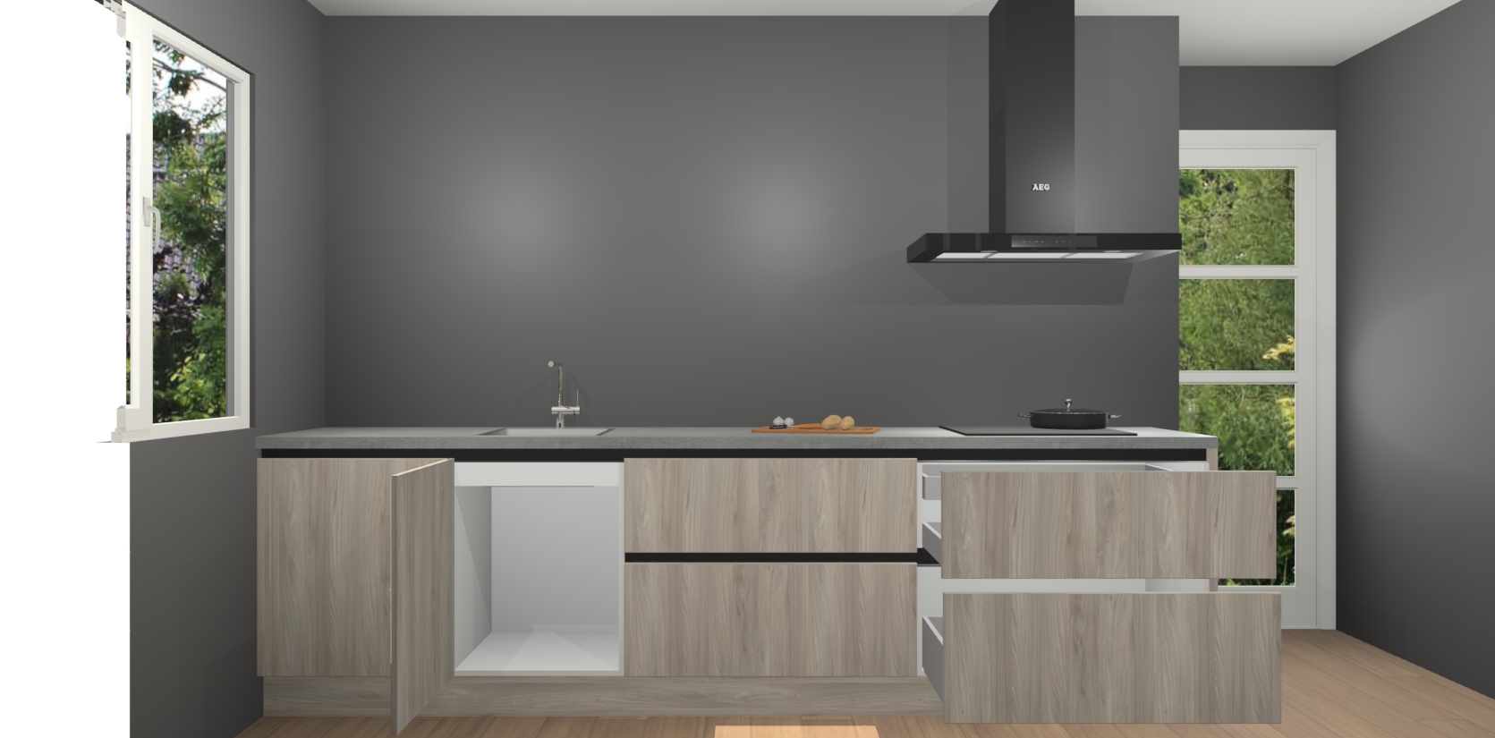 De softclose deuren openen en sluiten is ook heel eenvoudig - geniet van een moeiteloze keukenervaring, zelfs als er kinderen rondlopen. Voor extra gemak bij het plaatsen van uw bestelling bieden we ook een upgrade naar een kookplaat met geïntegreerde afzuiging.