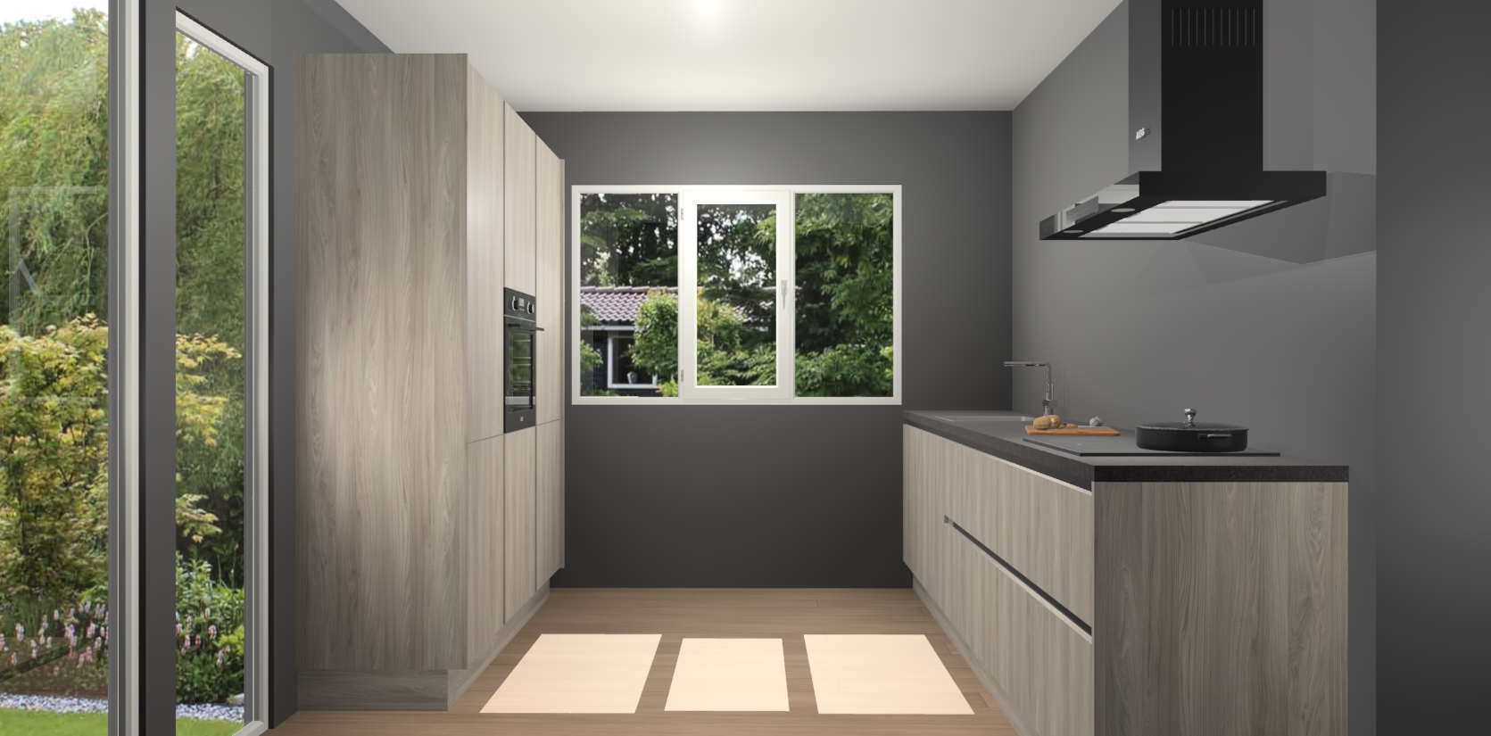 De softclose deuren openen en sluiten is ook heel eenvoudig - geniet van een moeiteloze keukenervaring, zelfs als er kinderen rondlopen. Voor extra gemak bij het plaatsen van uw bestelling bieden we ook een upgrade naar een kookplaat met geïntegreerde afzuiging.