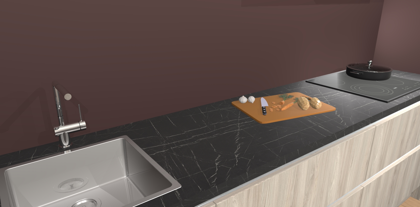 - Uitsparing van kookplaat, spoelbak en kraan dient u zelf te verzorgen.