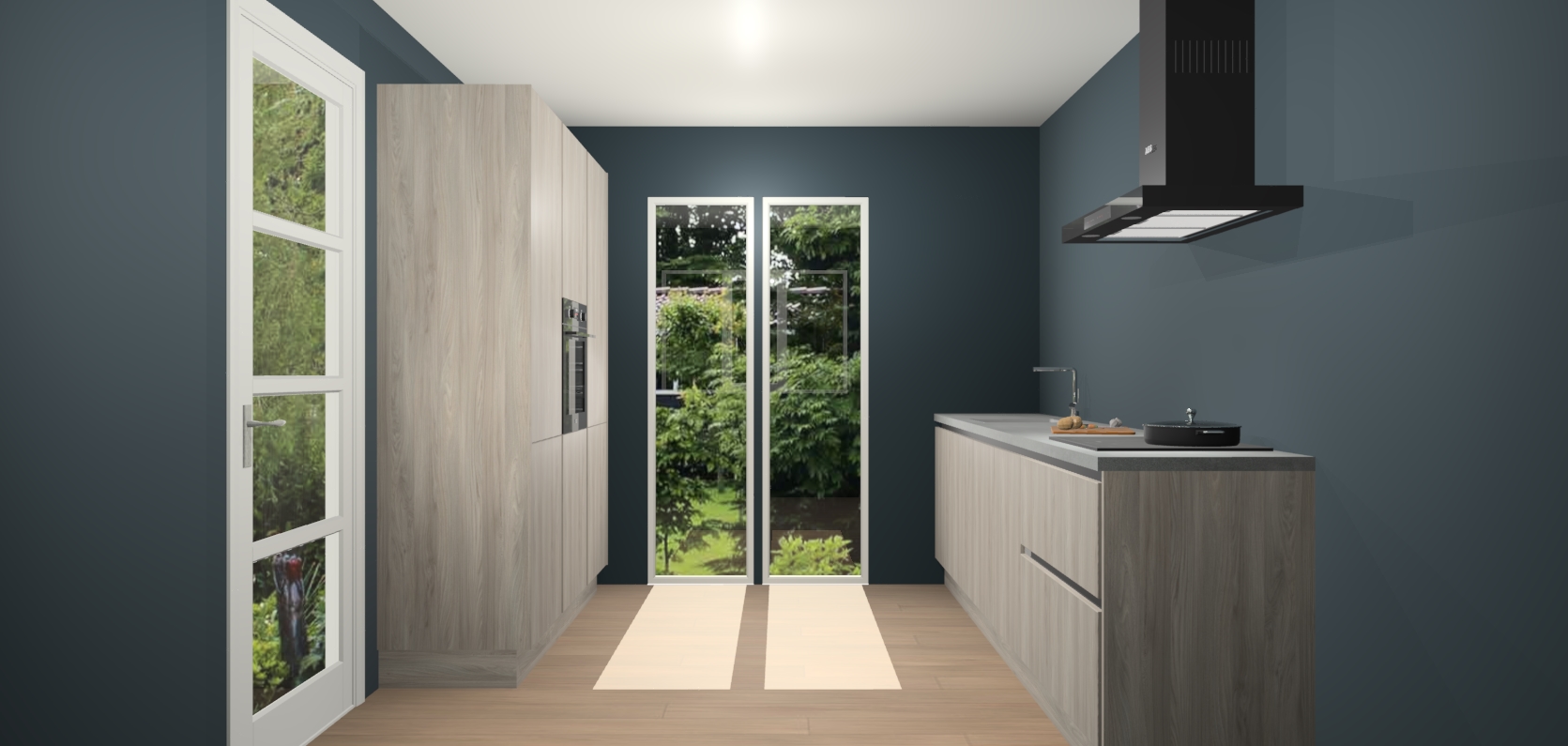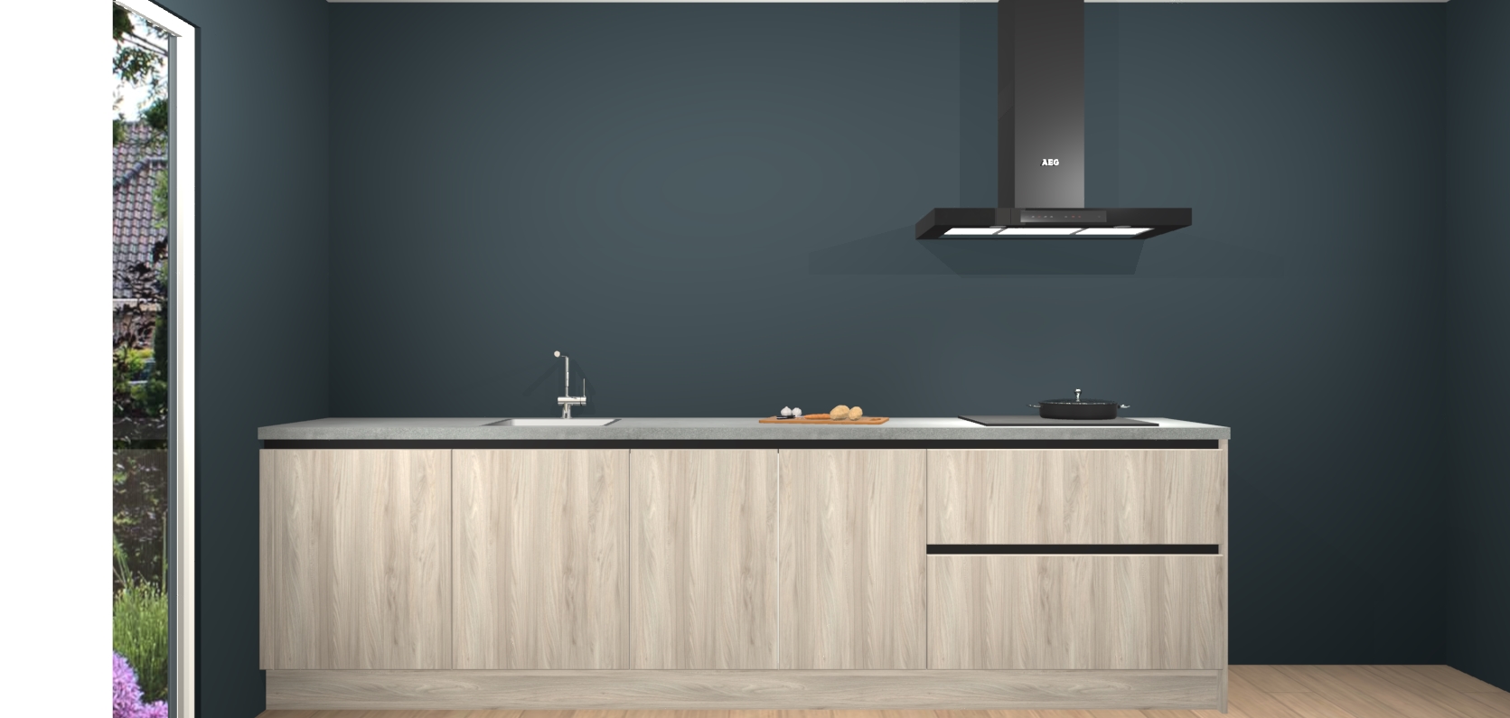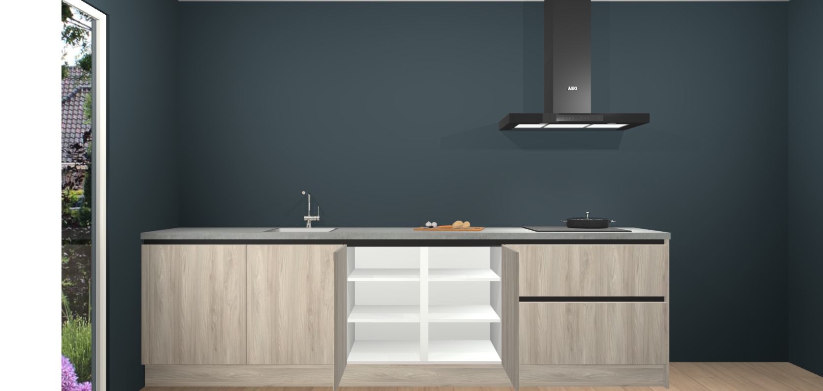 De softclose deuren openen en sluiten is ook heel eenvoudig - geniet van een moeiteloze keukenervaring, zelfs als er kinderen rondlopen. Voor extra gemak bij het plaatsen van uw bestelling bieden we ook een upgrade naar een kookplaat met geïntegreerde afzuiging.