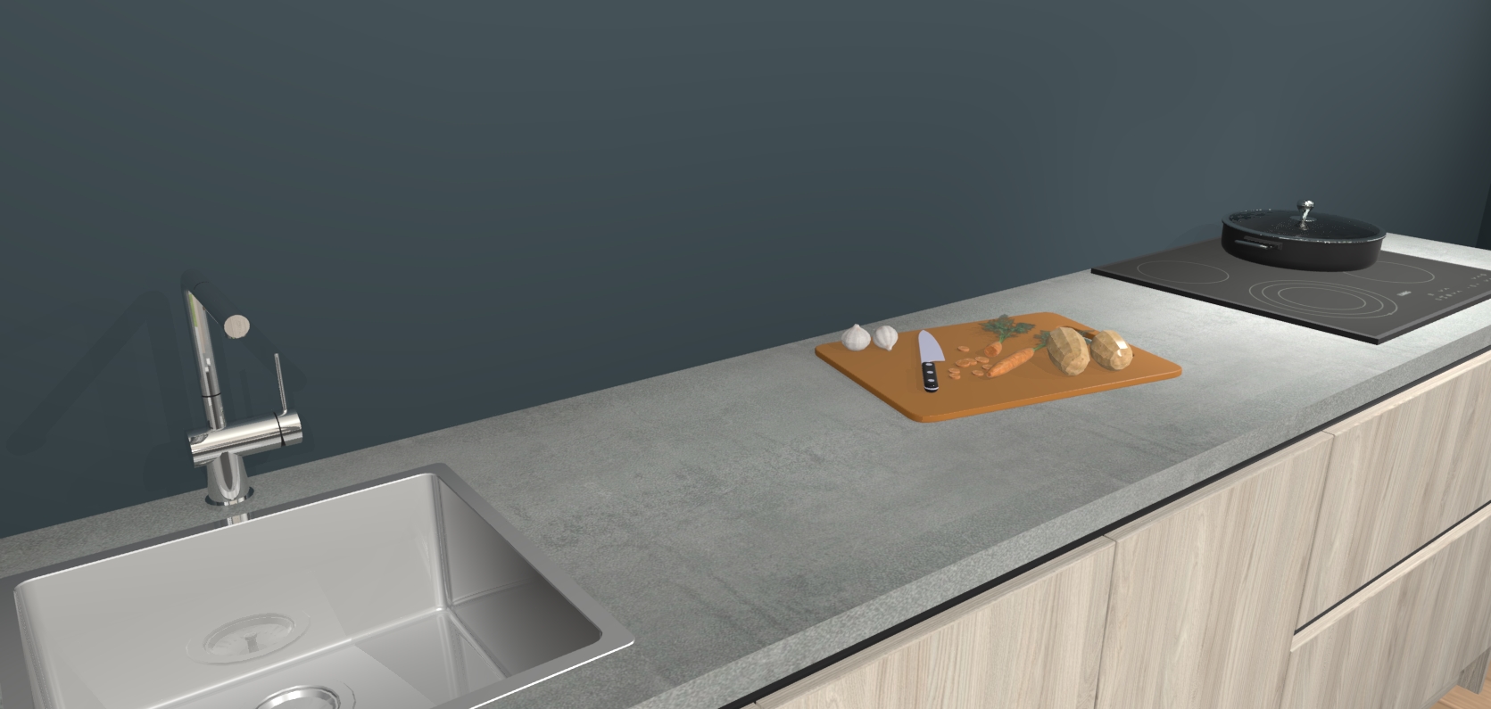 Inclusief plinten, stelpoten en werkblad