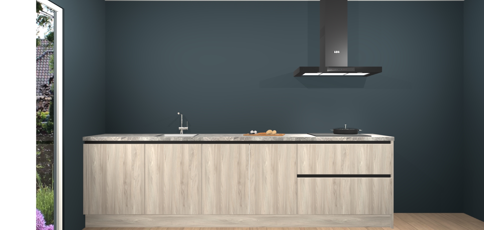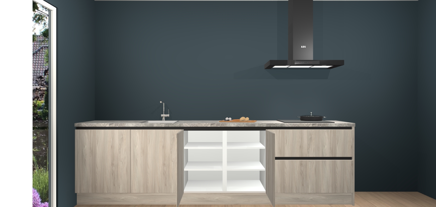 De softclose deuren openen en sluiten is ook heel eenvoudig - geniet van een moeiteloze keukenervaring, zelfs als er kinderen rondlopen. Voor extra gemak bij het plaatsen van uw bestelling bieden we ook een upgrade naar een kookplaat met geïntegreerde afzuiging.