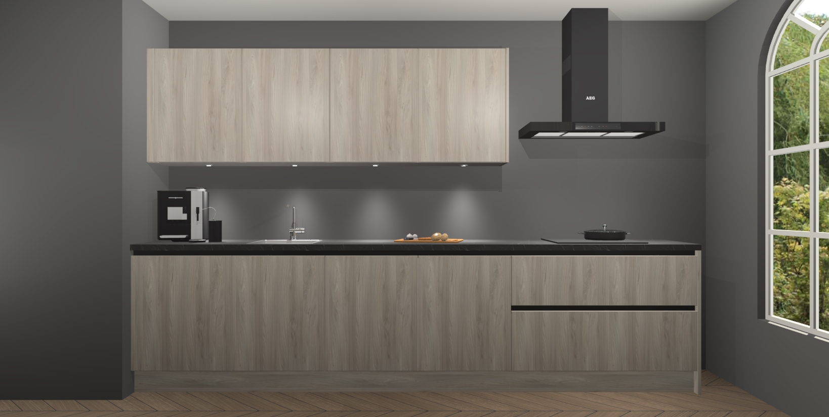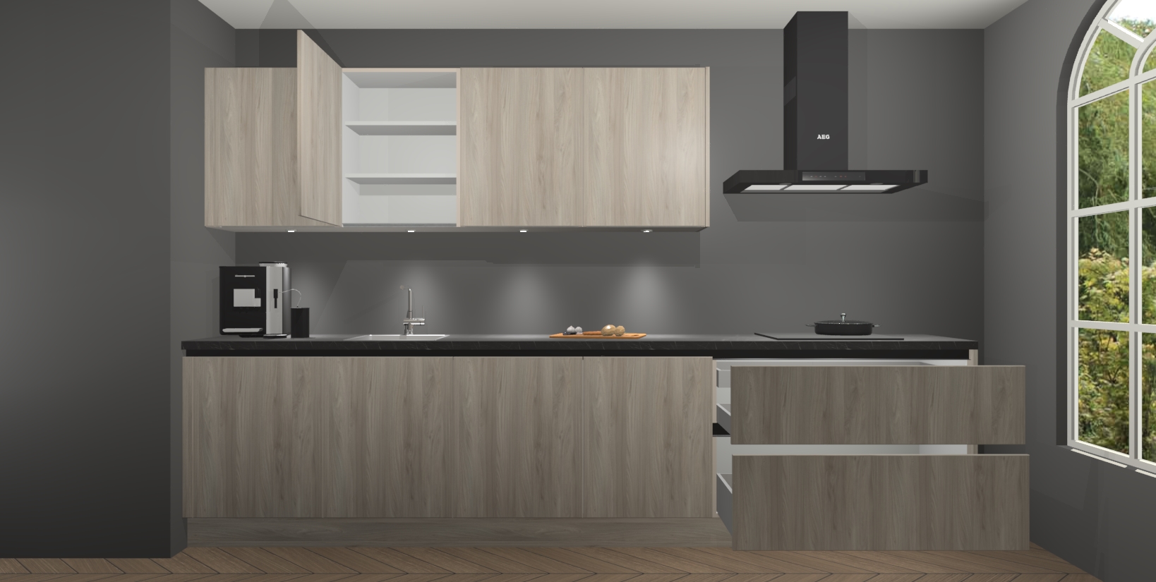 De softclose deuren openen en sluiten is ook heel eenvoudig - geniet van een moeiteloze keukenervaring, zelfs als er kinderen rondlopen. Voor extra gemak bij het plaatsen van uw bestelling bieden we ook een upgrade naar een kookplaat met geïntegreerde afzuiging.