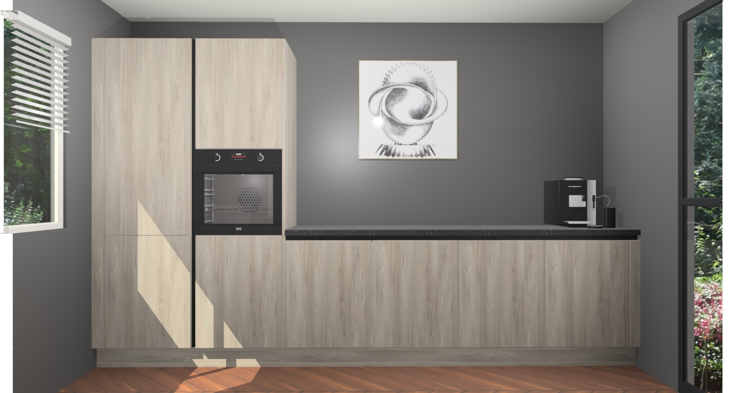 Welkom bij de Olm greeploze keuken Lusaka. Deze prachtige keuken zal de komende jaren het middelpunt van de belangstelling in uw huis zijn. Uitgerust met vijf inbouwapparaten komt u nooit kookgereedschap tekort. Bovendien geeft de warme houtlook elke ruimte een uitnodigende en tijdloze uitstraling.