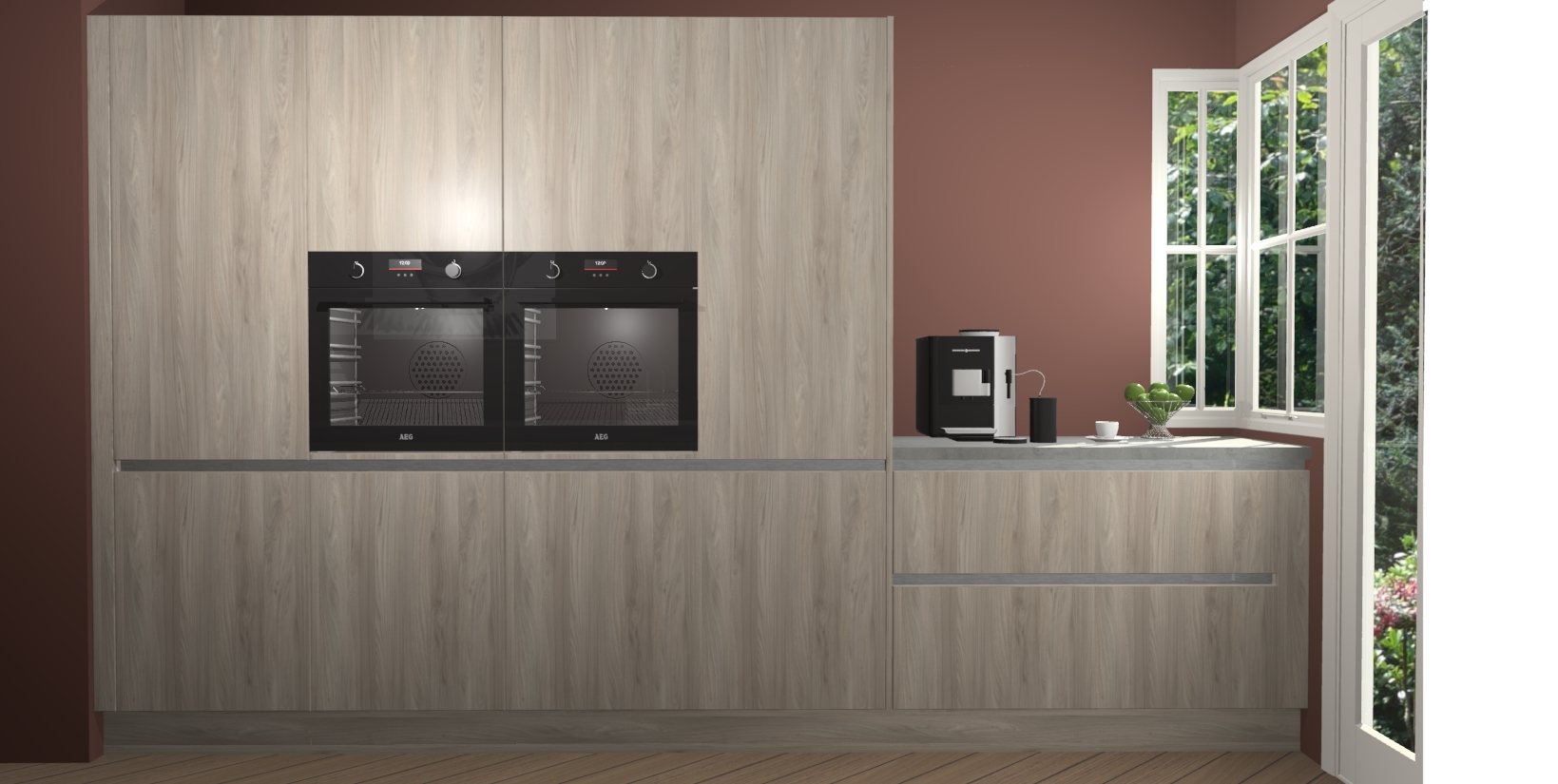 Een stijlvolle en praktische keuken als deze mag gezien worden. Dankzij de prachtige olm matte afwerking wordt de keuken gemakkelijk het middelpunt van uw huis - hij ziet er geweldig uit onder allerlei lichtomstandigheden, van dag tot nacht!