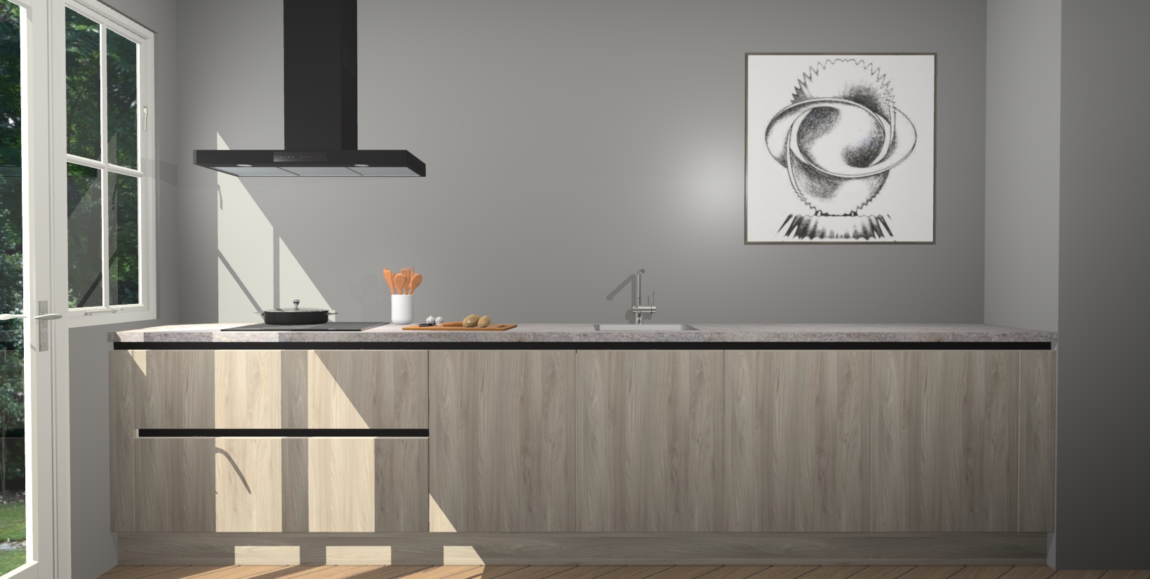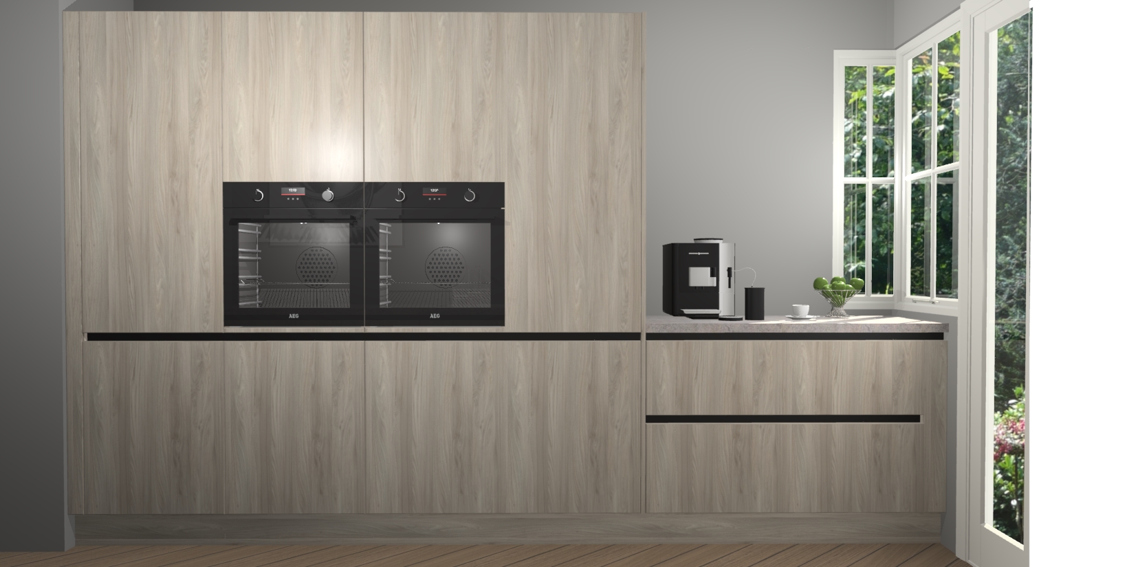 Een stijlvolle en praktische keuken als deze mag gezien worden. Dankzij de prachtige olm matte afwerking wordt de keuken gemakkelijk het middelpunt van uw huis - hij ziet er geweldig uit onder allerlei lichtomstandigheden, van dag tot nacht!