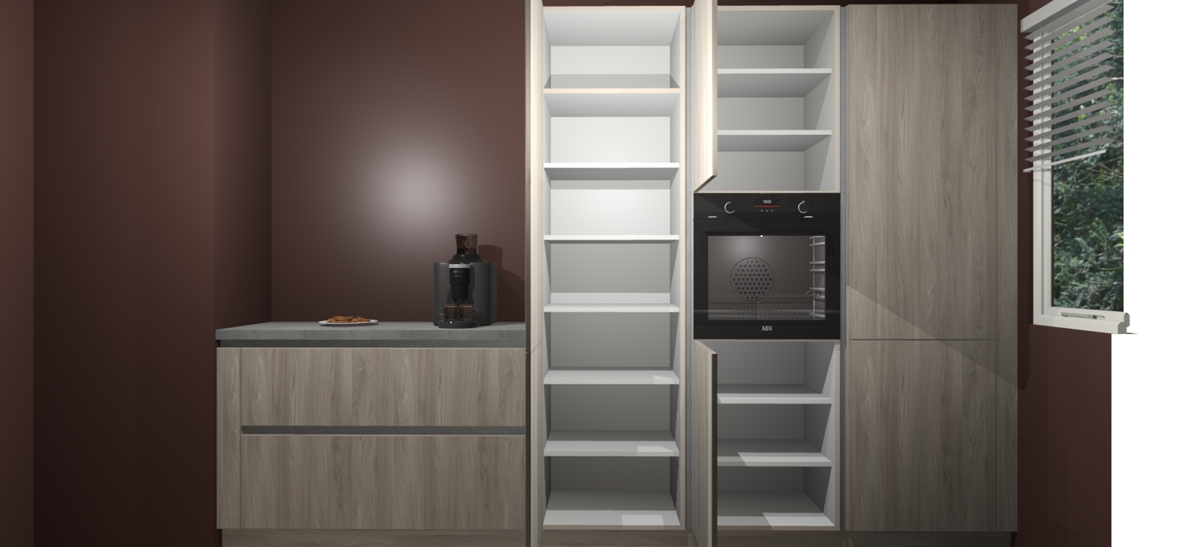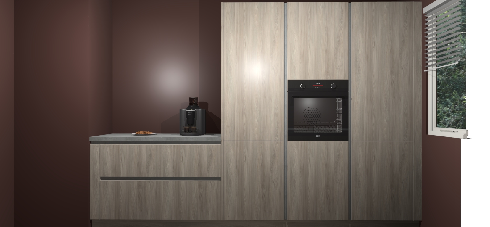 Een stijlvolle en praktische keuken als deze mag gezien worden. Dankzij de prachtige Olm matte afwerking wordt de keuken gemakkelijk het middelpunt van uw huis - hij ziet er geweldig uit onder allerlei lichtomstandigheden, van dag tot nacht!