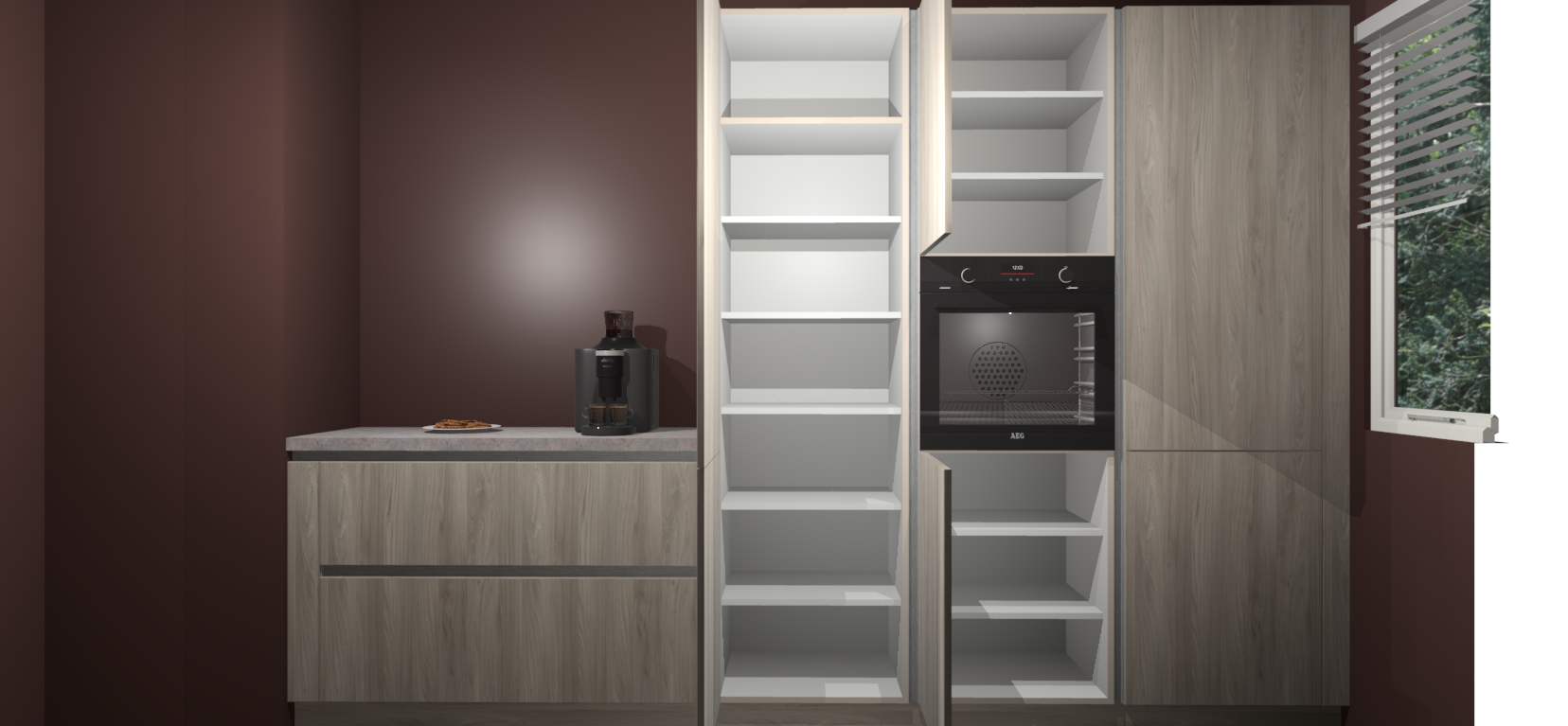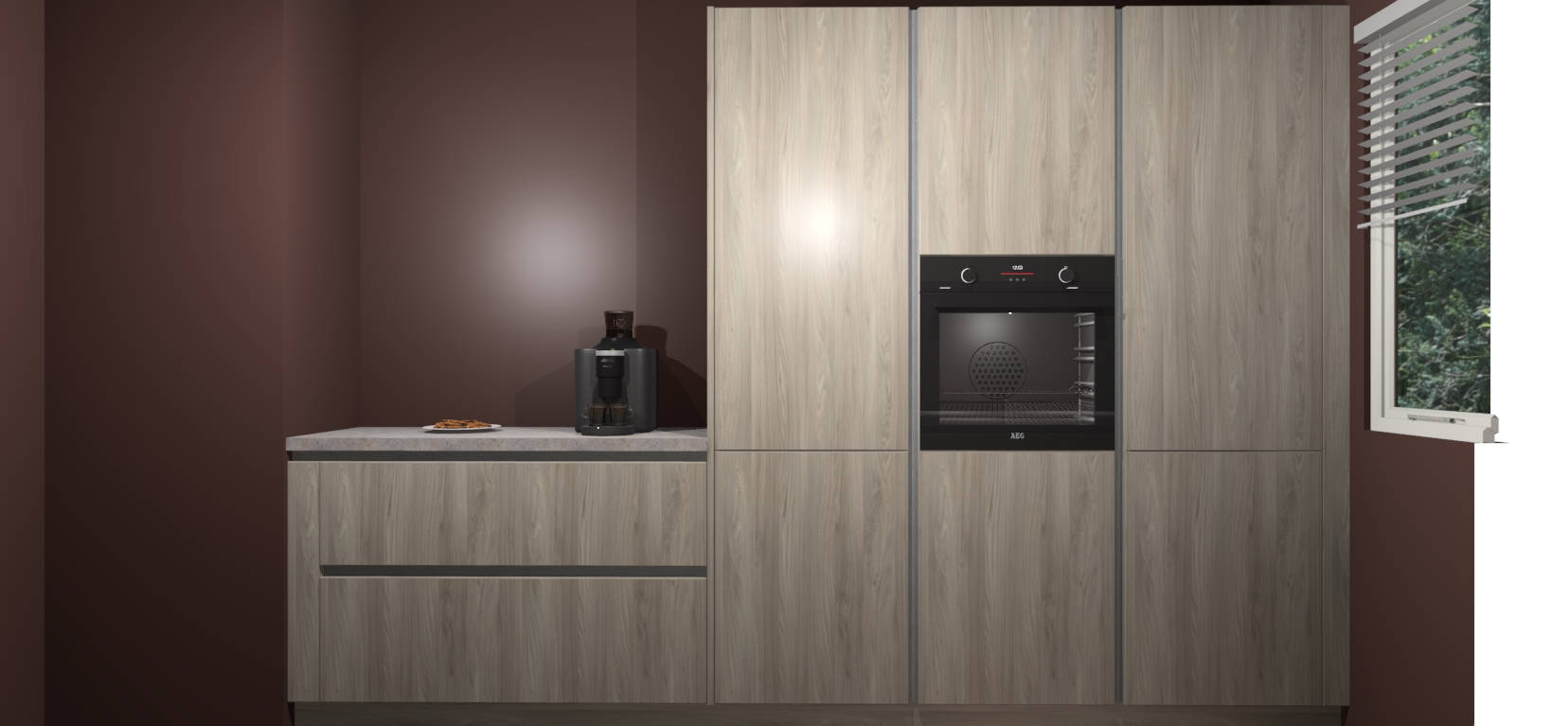Een stijlvolle en praktische keuken als deze mag gezien worden. Dankzij de prachtige Olm matte afwerking wordt de keuken gemakkelijk het middelpunt van uw huis - hij ziet er geweldig uit onder allerlei lichtomstandigheden, van dag tot nacht!