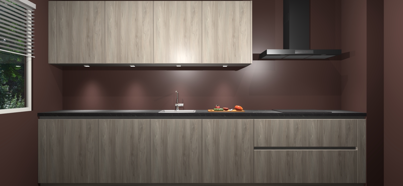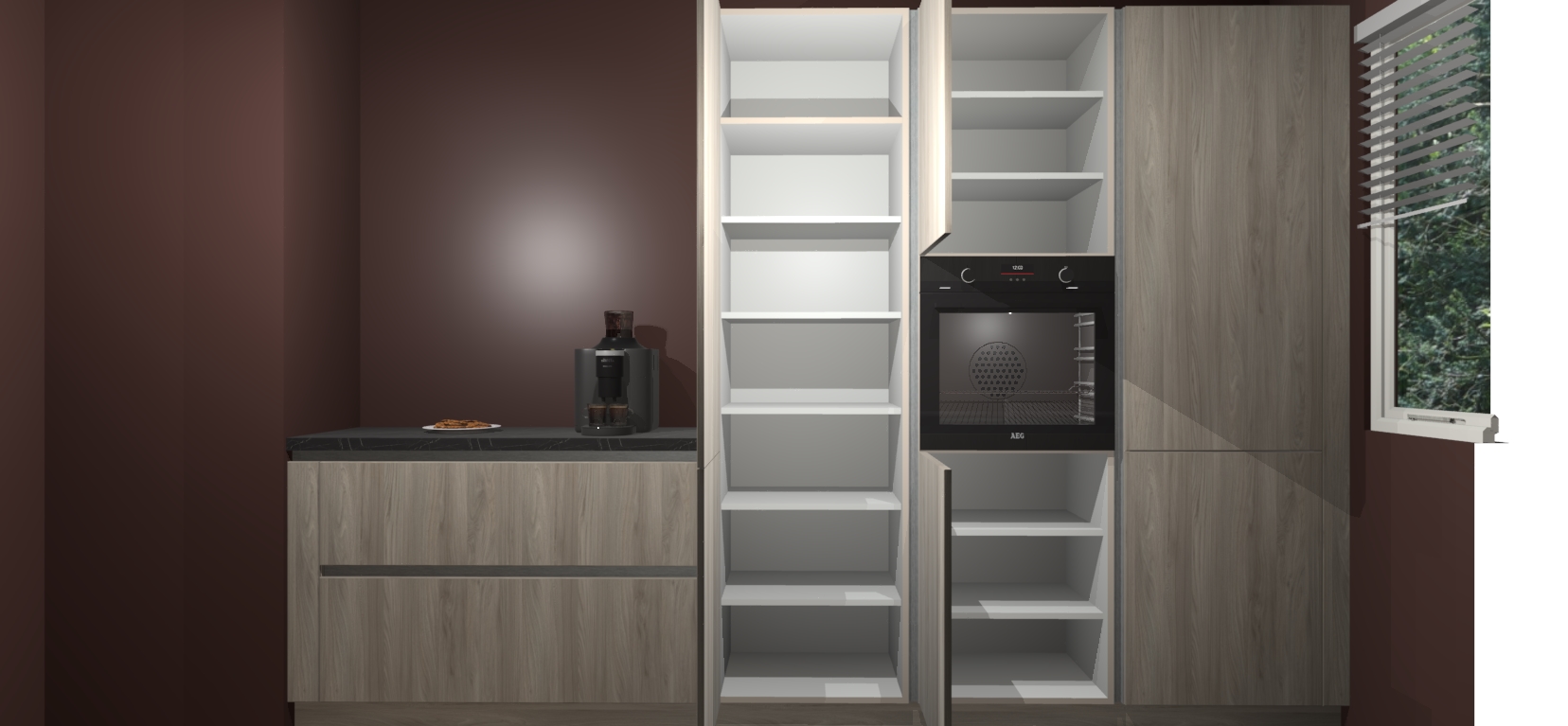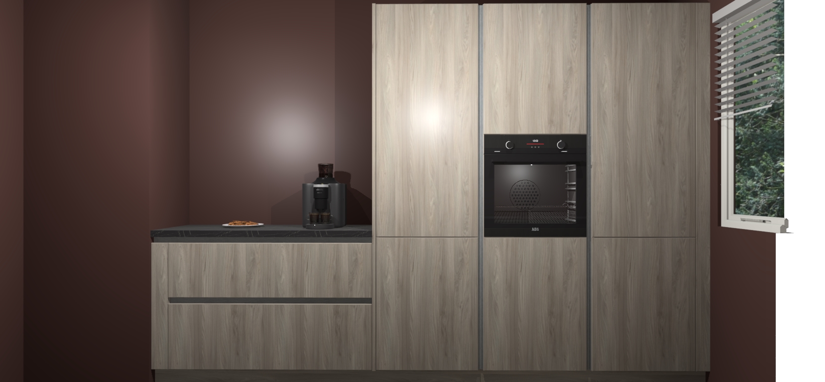 Een stijlvolle en praktische keuken als deze mag gezien worden. Dankzij de prachtige Olm matte afwerking wordt de keuken gemakkelijk het middelpunt van uw huis - hij ziet er geweldig uit onder allerlei lichtomstandigheden, van dag tot nacht!