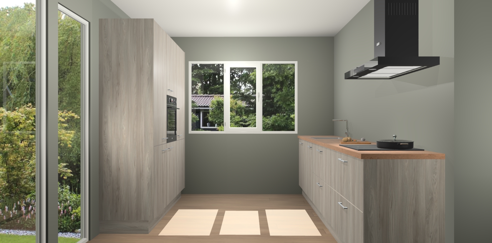 De softclose deuren openen en sluiten is ook heel eenvoudig - geniet van een moeiteloze keukenervaring, zelfs als er kinderen rondlopen. Voor extra gemak bij het plaatsen van uw bestelling bieden we ook een upgrade naar een kookplaat met geïntegreerde afzuiging.