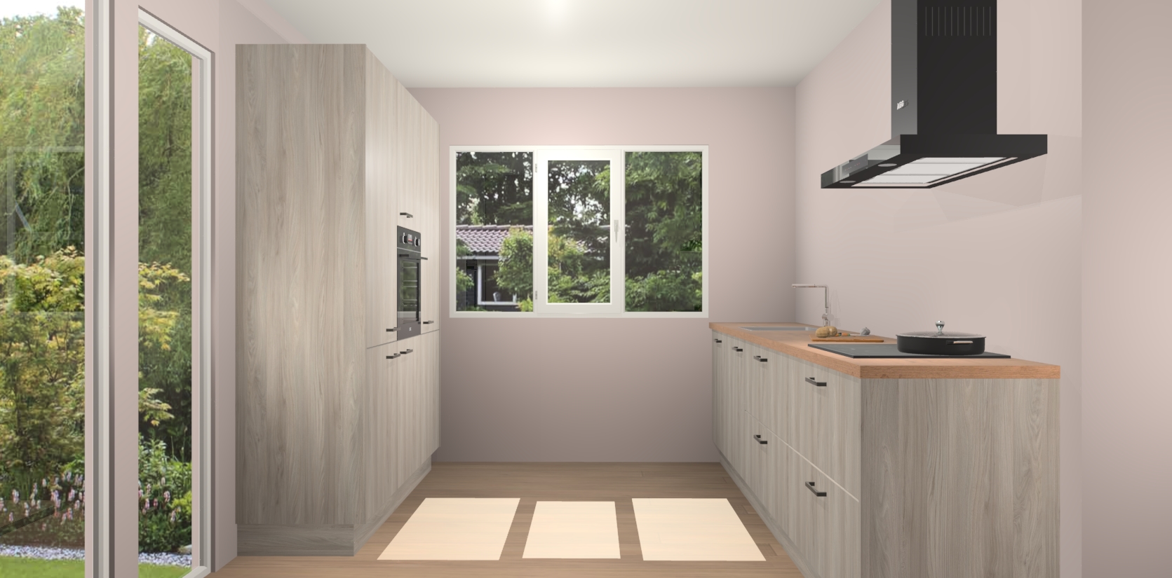 De softclose deuren openen en sluiten is ook heel eenvoudig - geniet van een moeiteloze keukenervaring, zelfs als er kinderen rondlopen. Voor extra gemak bij het plaatsen van uw bestelling bieden we ook een upgrade naar een kookplaat met geïntegreerde afzuiging.