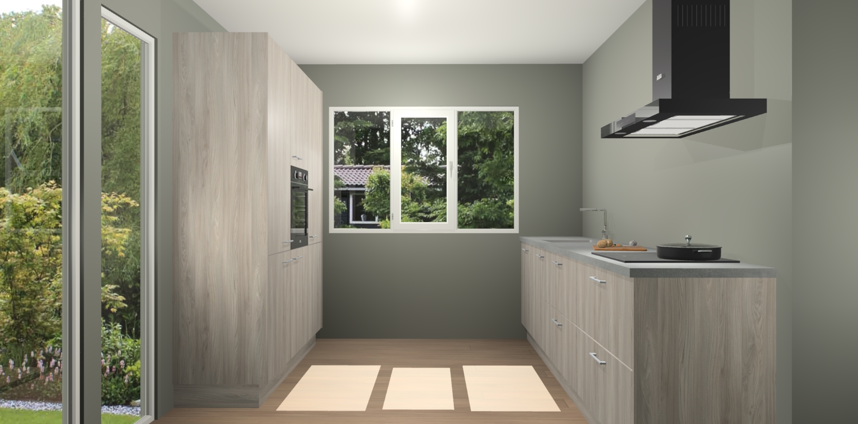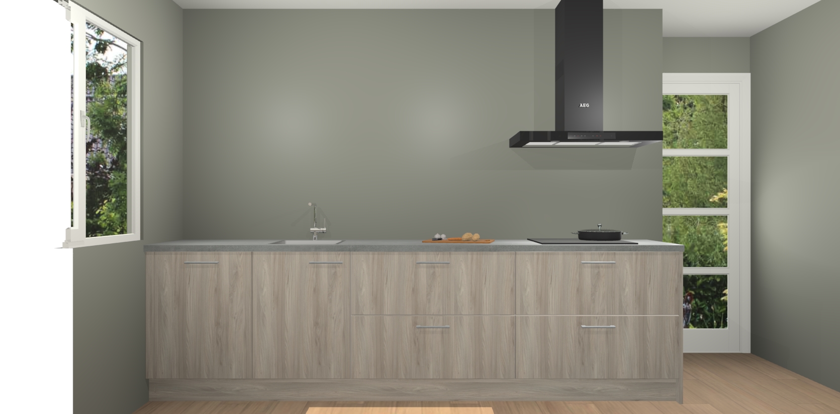 De softclose deuren openen en sluiten is ook heel eenvoudig - geniet van een moeiteloze keukenervaring, zelfs als er kinderen rondlopen. Voor extra gemak bij het plaatsen van uw bestelling bieden we ook een upgrade naar een kookplaat met geïntegreerde afzuiging.