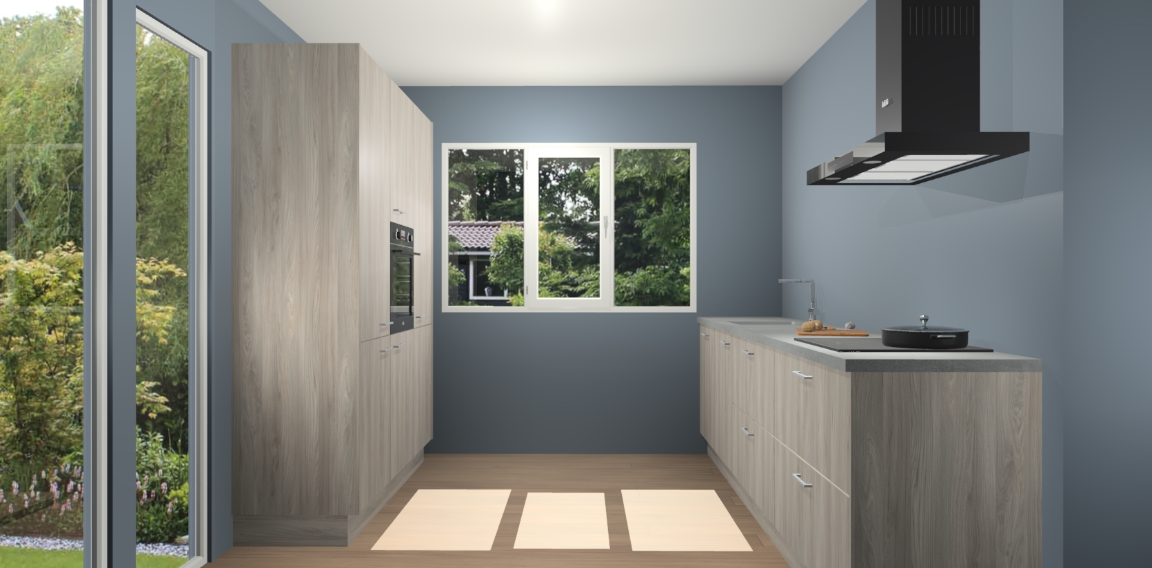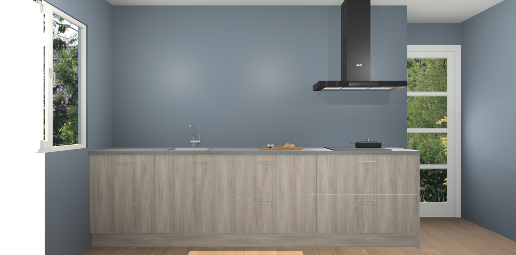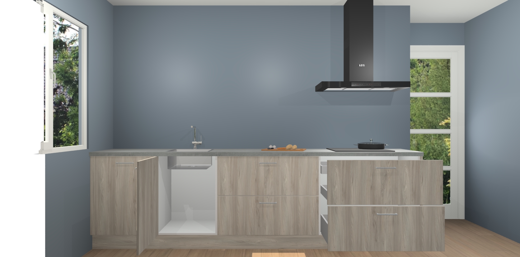 De softclose deuren openen en sluiten is ook heel eenvoudig - geniet van een moeiteloze keukenervaring, zelfs als er kinderen rondlopen. Voor extra gemak bij het plaatsen van uw bestelling bieden we ook een upgrade naar een kookplaat met geïntegreerde afzuiging.