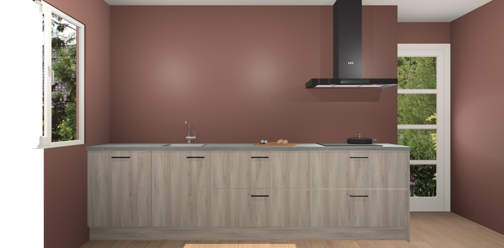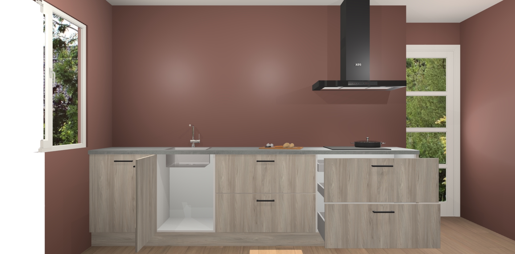 De softclose deuren openen en sluiten is ook heel eenvoudig - geniet van een moeiteloze keukenervaring, zelfs als er kinderen rondlopen. Voor extra gemak bij het plaatsen van uw bestelling bieden we ook een upgrade naar een kookplaat met geïntegreerde afzuiging.