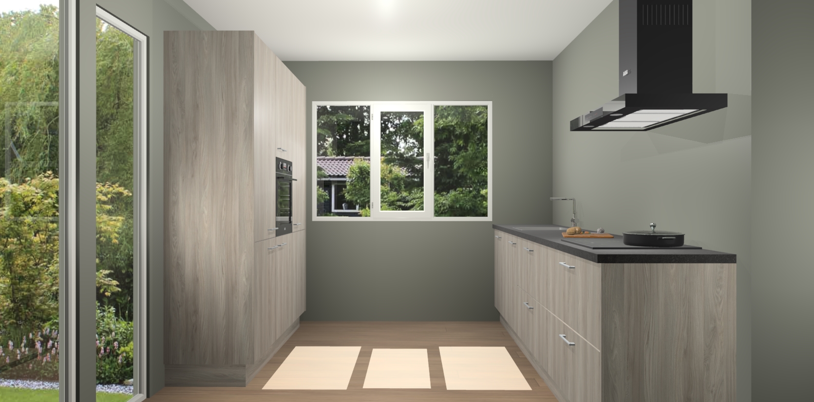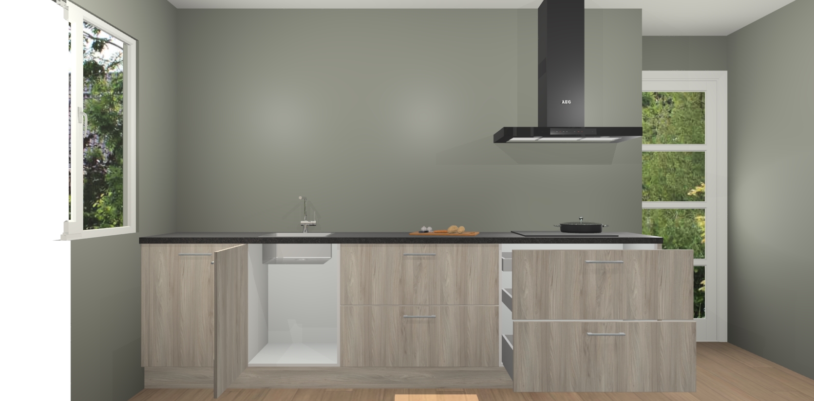 De softclose deuren openen en sluiten is ook heel eenvoudig - geniet van een moeiteloze keukenervaring, zelfs als er kinderen rondlopen. Voor extra gemak bij het plaatsen van uw bestelling bieden we ook een upgrade naar een kookplaat met geïntegreerde afzuiging.