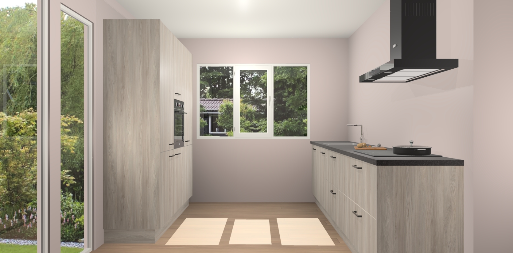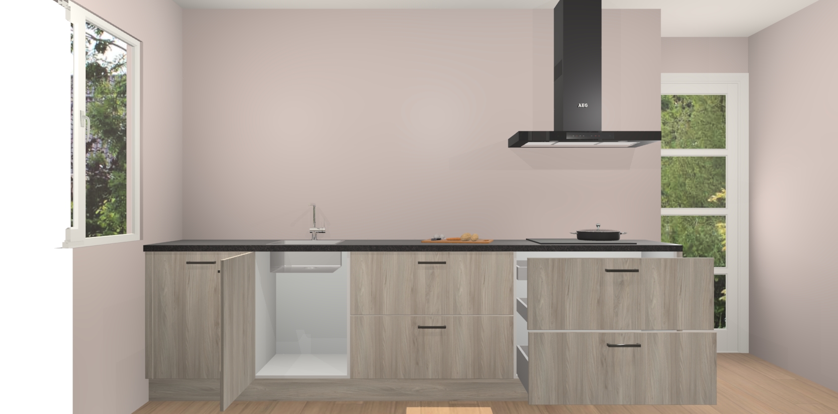 De softclose deuren openen en sluiten is ook heel eenvoudig - geniet van een moeiteloze keukenervaring, zelfs als er kinderen rondlopen. Voor extra gemak bij het plaatsen van uw bestelling bieden we ook een upgrade naar een kookplaat met geïntegreerde afzuiging.