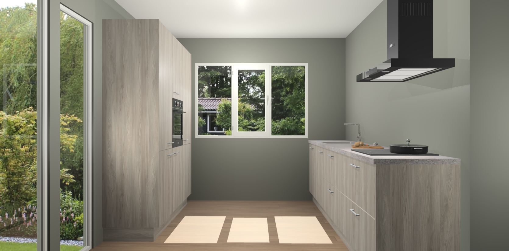 De softclose deuren openen en sluiten is ook heel eenvoudig - geniet van een moeiteloze keukenervaring, zelfs als er kinderen rondlopen. Voor extra gemak bij het plaatsen van uw bestelling bieden we ook een upgrade naar een kookplaat met geïntegreerde afzuiging.