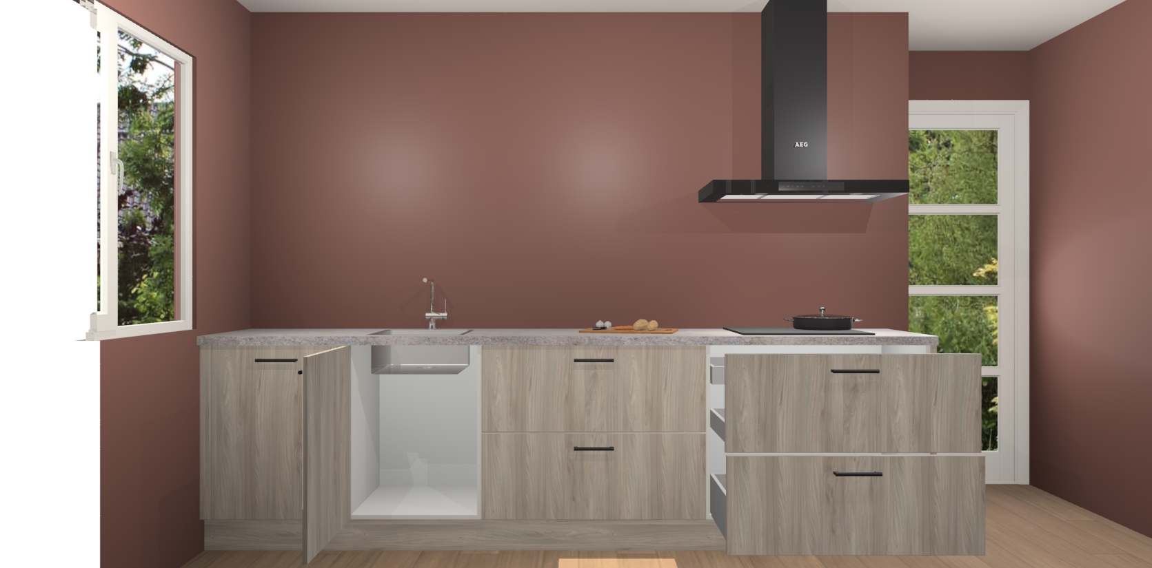 De softclose deuren openen en sluiten is ook heel eenvoudig - geniet van een moeiteloze keukenervaring, zelfs als er kinderen rondlopen. Voor extra gemak bij het plaatsen van uw bestelling bieden we ook een upgrade naar een kookplaat met geïntegreerde afzuiging.