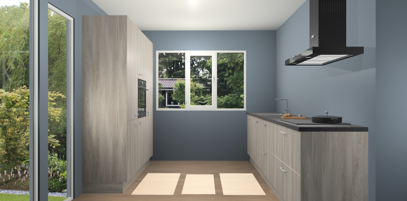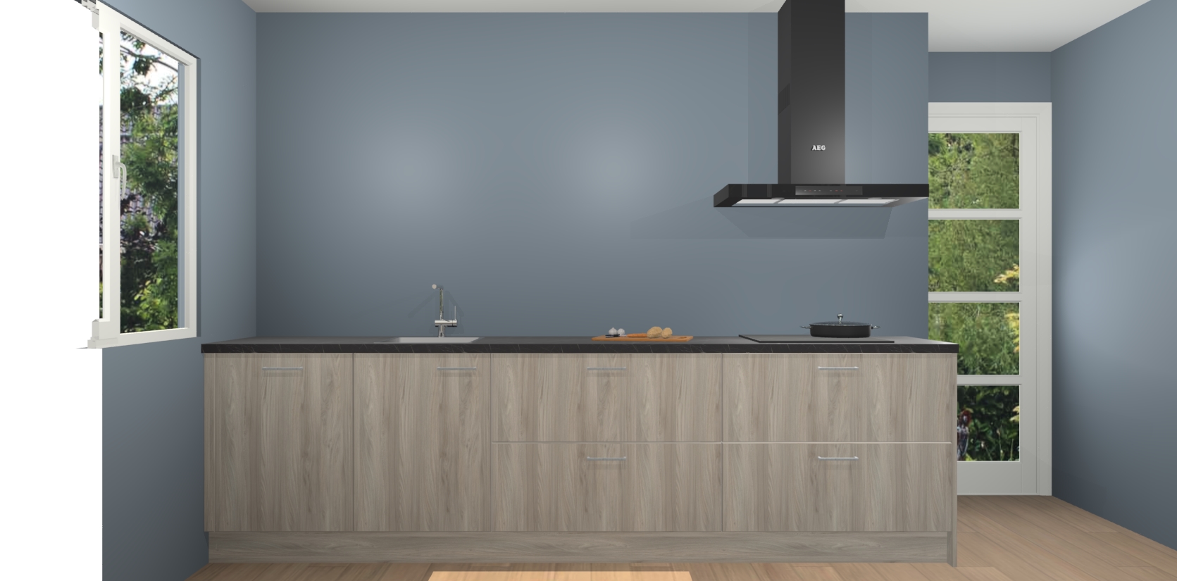 De softclose deuren openen en sluiten is ook heel eenvoudig - geniet van een moeiteloze keukenervaring, zelfs als er kinderen rondlopen. Voor extra gemak bij het plaatsen van uw bestelling bieden we ook een upgrade naar een kookplaat met geïntegreerde afzuiging.