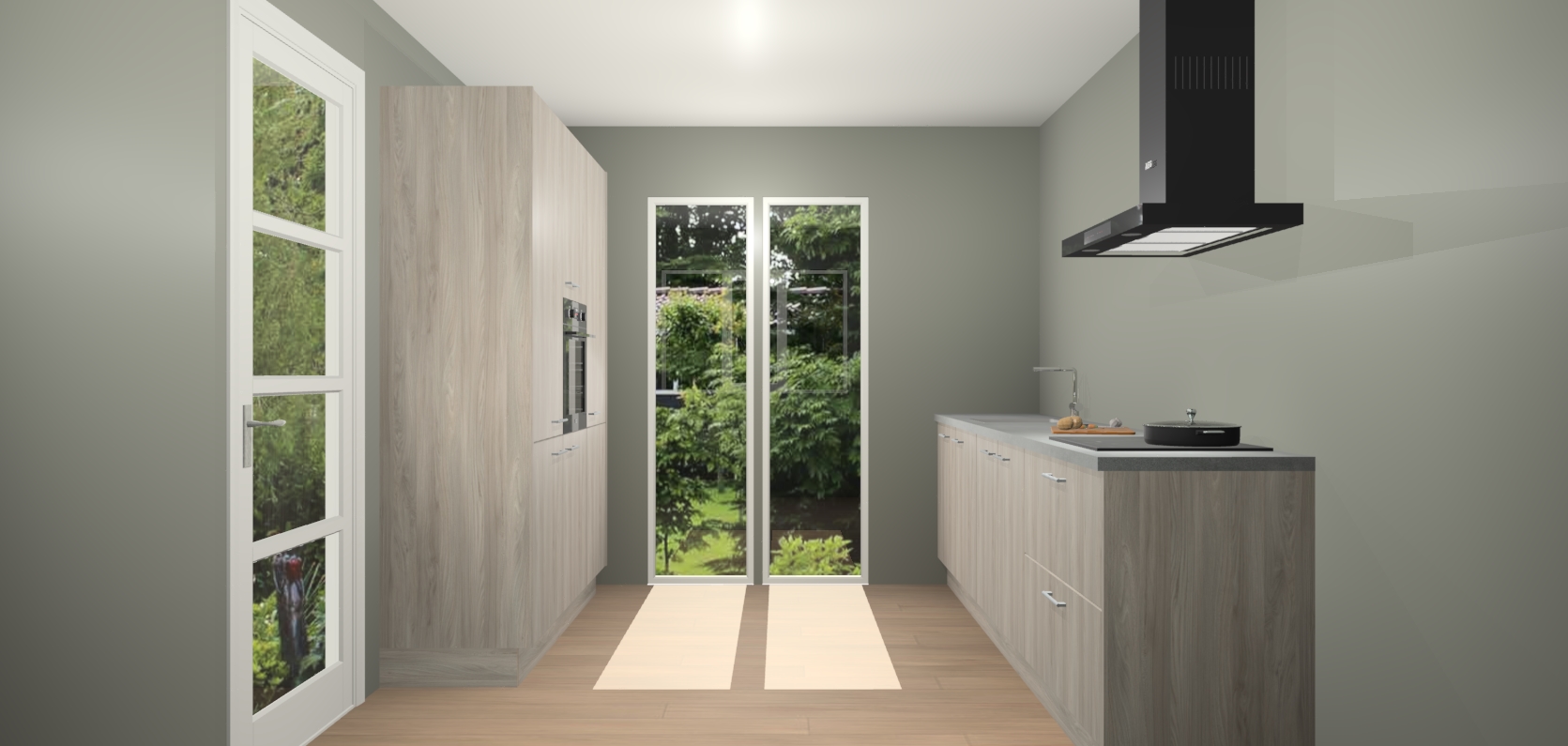 De softclose deuren openen en sluiten is ook heel eenvoudig - geniet van een moeiteloze keukenervaring, zelfs als er kinderen rondlopen. Voor extra gemak bij het plaatsen van uw bestelling bieden we ook een upgrade naar een kookplaat met geïntegreerde afzuiging.