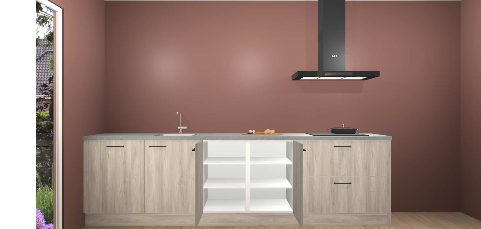 De softclose deuren openen en sluiten is ook heel eenvoudig - geniet van een moeiteloze keukenervaring, zelfs als er kinderen rondlopen. Voor extra gemak bij het plaatsen van uw bestelling bieden we ook een upgrade naar een kookplaat met geïntegreerde afzuiging.