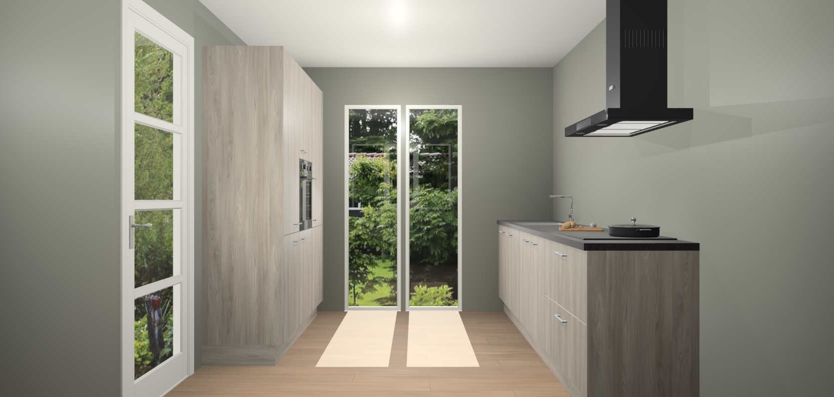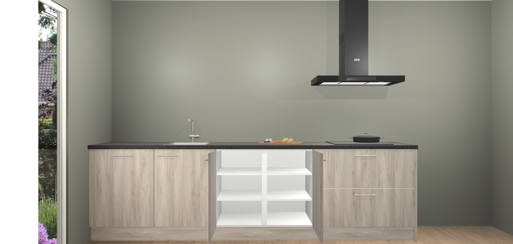 De softclose deuren openen en sluiten is ook heel eenvoudig - geniet van een moeiteloze keukenervaring, zelfs als er kinderen rondlopen. Voor extra gemak bij het plaatsen van uw bestelling bieden we ook een upgrade naar een kookplaat met geïntegreerde afzuiging.