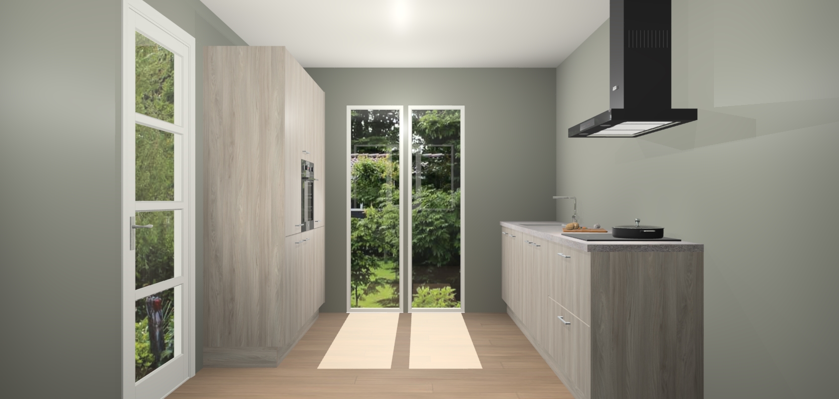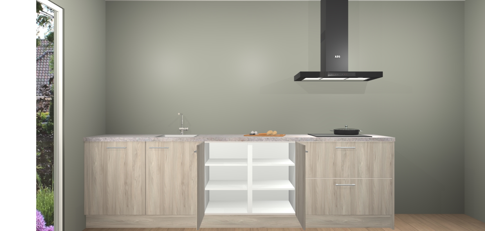 De softclose deuren openen en sluiten is ook heel eenvoudig - geniet van een moeiteloze keukenervaring, zelfs als er kinderen rondlopen. Voor extra gemak bij het plaatsen van uw bestelling bieden we ook een upgrade naar een kookplaat met geïntegreerde afzuiging.