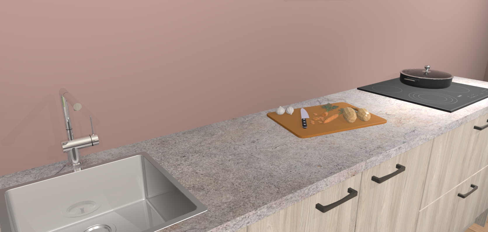 - Uitsparing van kookplaat, spoelbak en kraan dient u zelf te verzorgen.
