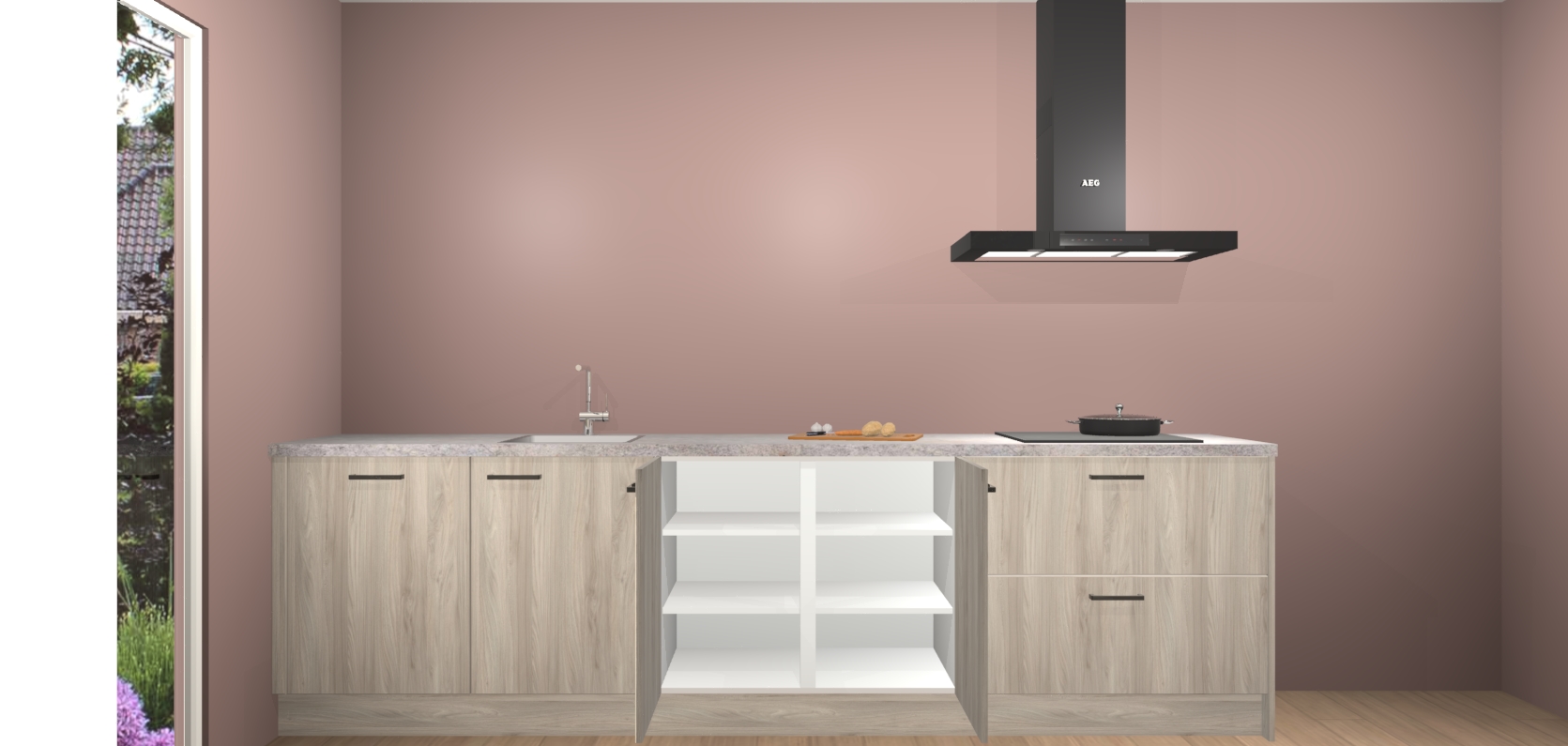 De softclose deuren openen en sluiten is ook heel eenvoudig - geniet van een moeiteloze keukenervaring, zelfs als er kinderen rondlopen. Voor extra gemak bij het plaatsen van uw bestelling bieden we ook een upgrade naar een kookplaat met geïntegreerde afzuiging.