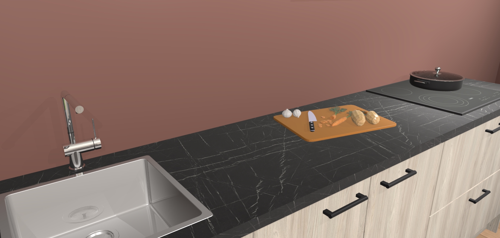 - Uitsparing van kookplaat, spoelbak en kraan dient u zelf te verzorgen.