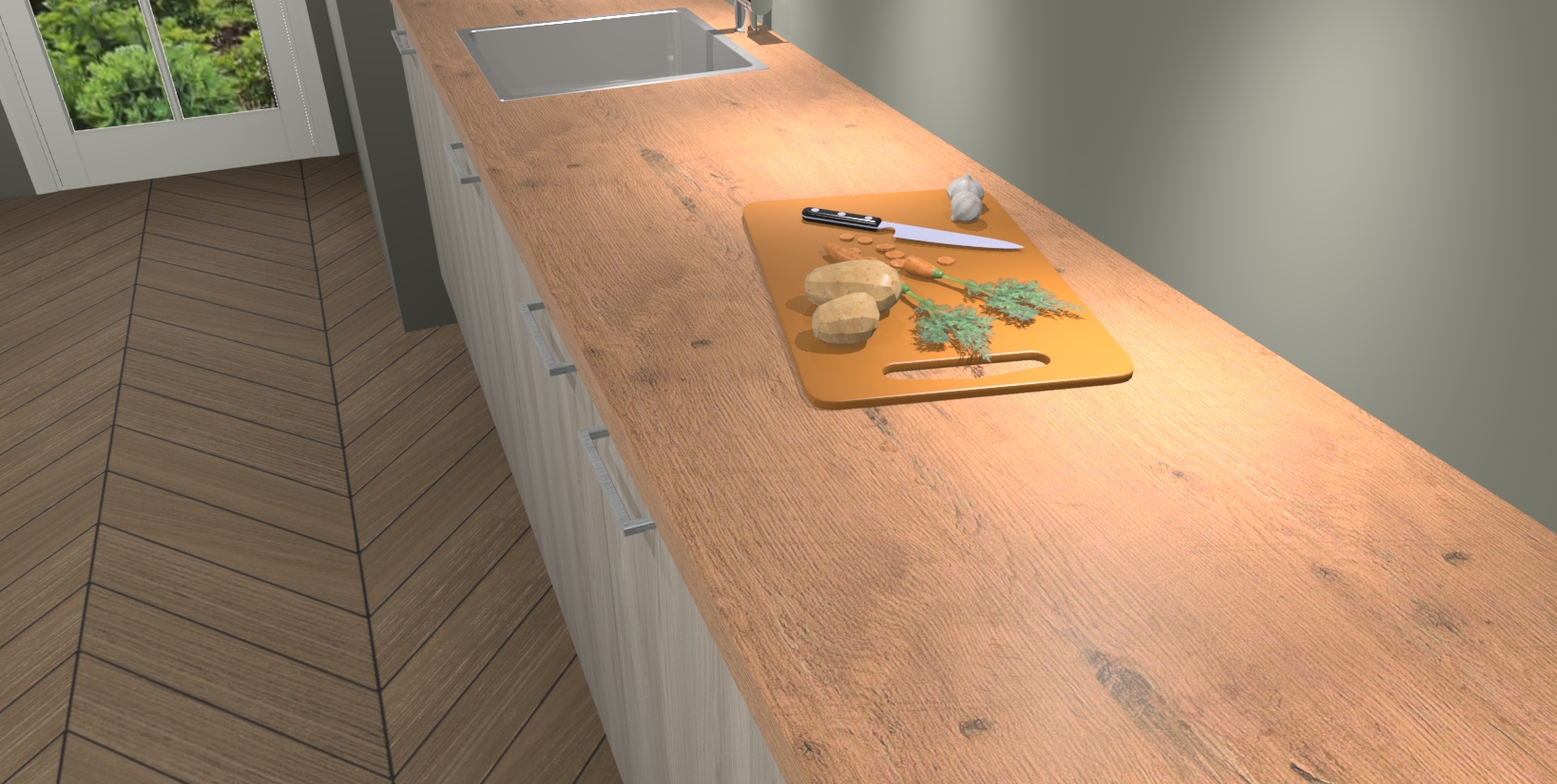 - Bij een hoekwerkblad zijn de hoeken in gevreesd en op maat gemaakt