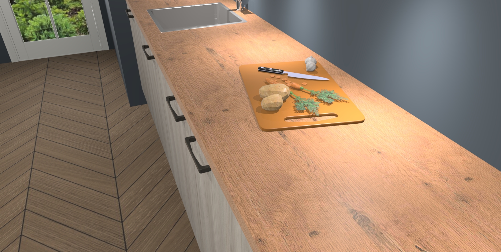 • Bij een hoekwerkblad zijn de hoeken in gevreesd en op maat gemaakt