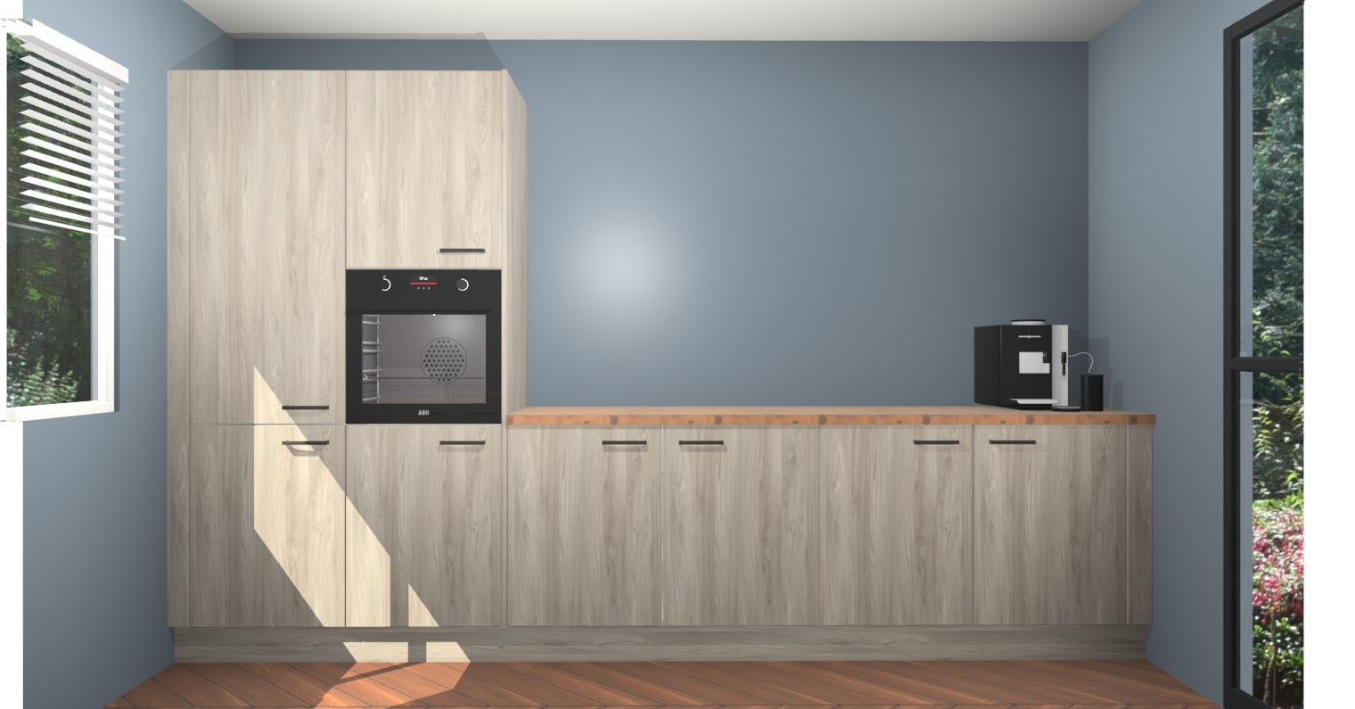 Welkom bij de Olm keuken Lusaka. Deze prachtige keuken zal de komende jaren het middelpunt van de belangstelling in uw huis zijn. Uitgerust met vijf inbouwapparaten komt u nooit kookgereedschap tekort. Bovendien geeft de warme houtlook elke ruimte een uitnodigende en tijdloze uitstraling.