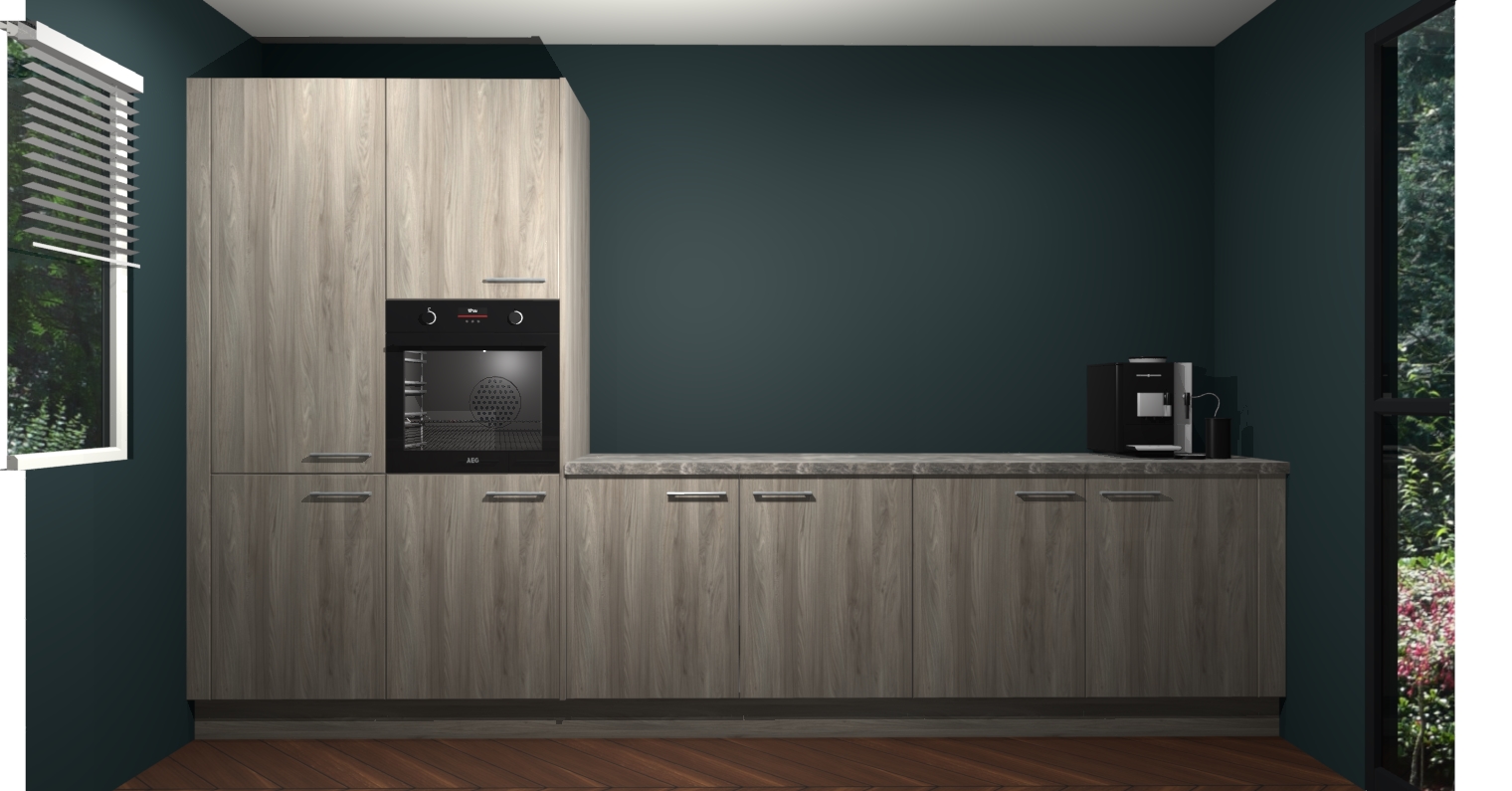 Welkom bij de Olm keuken Lusaka. Deze prachtige keuken zal de komende jaren het middelpunt van de belangstelling in uw huis zijn. Uitgerust met vijf inbouwapparaten komt u nooit kookgereedschap tekort. Bovendien geeft de warme houtlook elke ruimte een uitnodigende en tijdloze uitstraling.