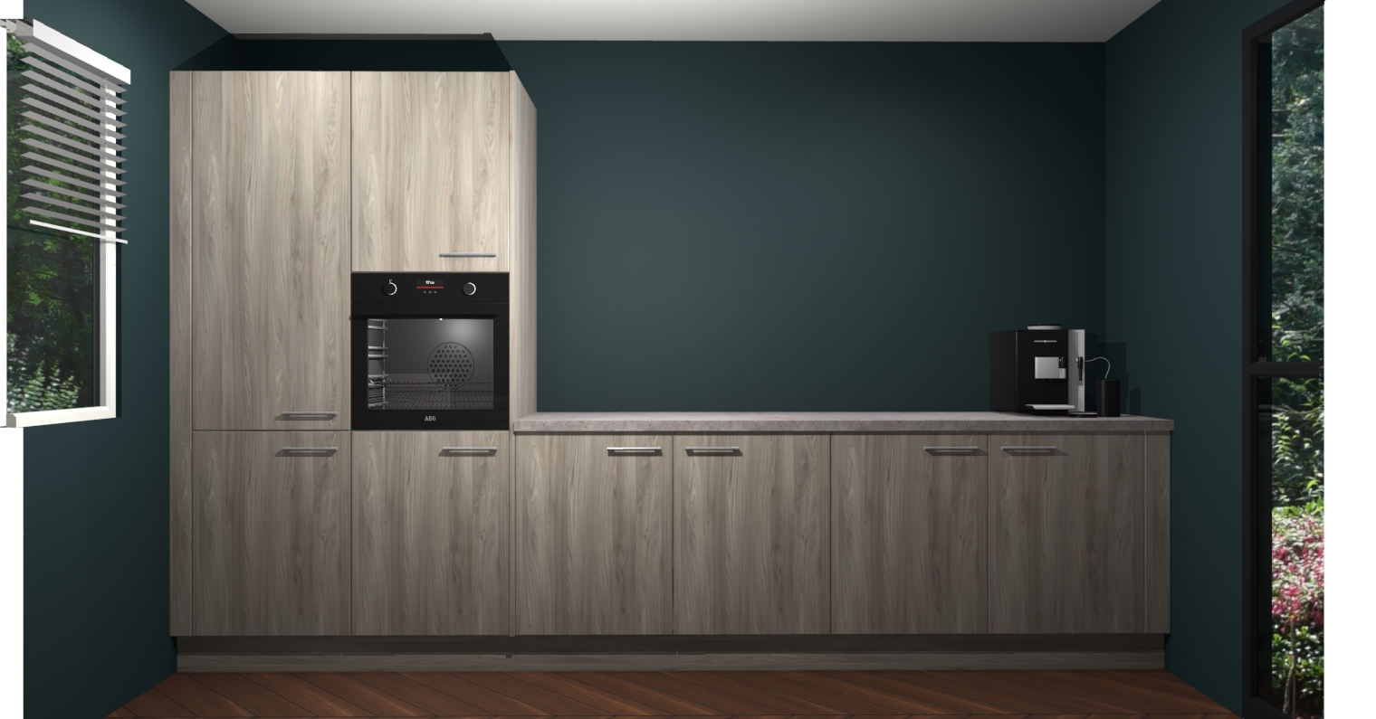 Welkom bij de Olm keuken Lusaka. Deze prachtige keuken zal de komende jaren het middelpunt van de belangstelling in uw huis zijn. Uitgerust met vijf inbouwapparaten komt u nooit kookgereedschap tekort. Bovendien geeft de warme houtlook elke ruimte een uitnodigende en tijdloze uitstraling.