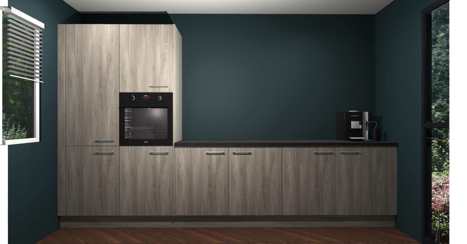 Welkom bij de Olm keuken Lusaka. Deze prachtige keuken zal de komende jaren het middelpunt van de belangstelling in uw huis zijn. Uitgerust met vijf inbouwapparaten komt u nooit kookgereedschap tekort. Bovendien geeft de warme houtlook elke ruimte een uitnodigende en tijdloze uitstraling.