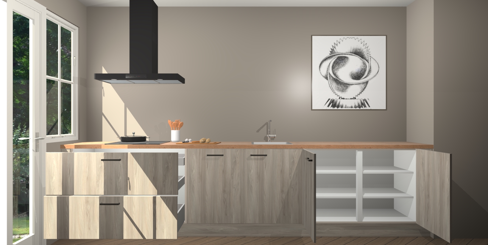 Een stijlvolle en praktische keuken als deze mag gezien worden. Dankzij de prachtige olm matte afwerking wordt de keuken gemakkelijk het middelpunt van uw huis - hij ziet er geweldig uit onder allerlei lichtomstandigheden, van dag tot nacht!