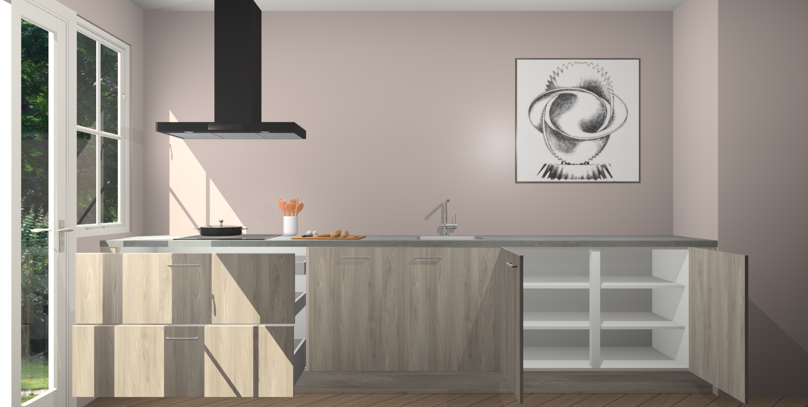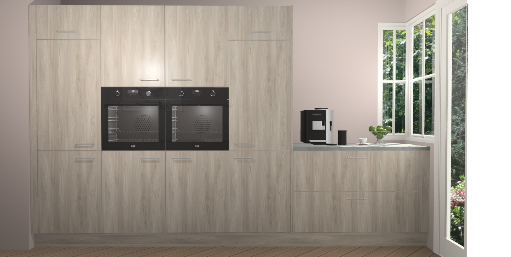 Een stijlvolle en praktische keuken als deze mag gezien worden. Dankzij de prachtige olm matte afwerking wordt de keuken gemakkelijk het middelpunt van uw huis - hij ziet er geweldig uit onder allerlei lichtomstandigheden, van dag tot nacht!