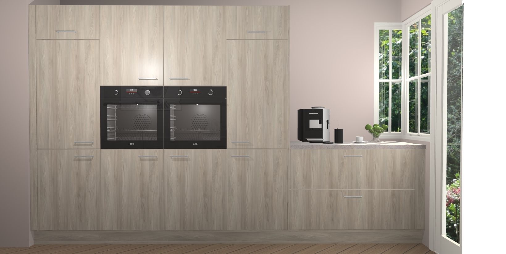 Een stijlvolle en praktische keuken als deze mag gezien worden. Dankzij de prachtige olm matte afwerking wordt de keuken gemakkelijk het middelpunt van uw huis - hij ziet er geweldig uit onder allerlei lichtomstandigheden, van dag tot nacht!