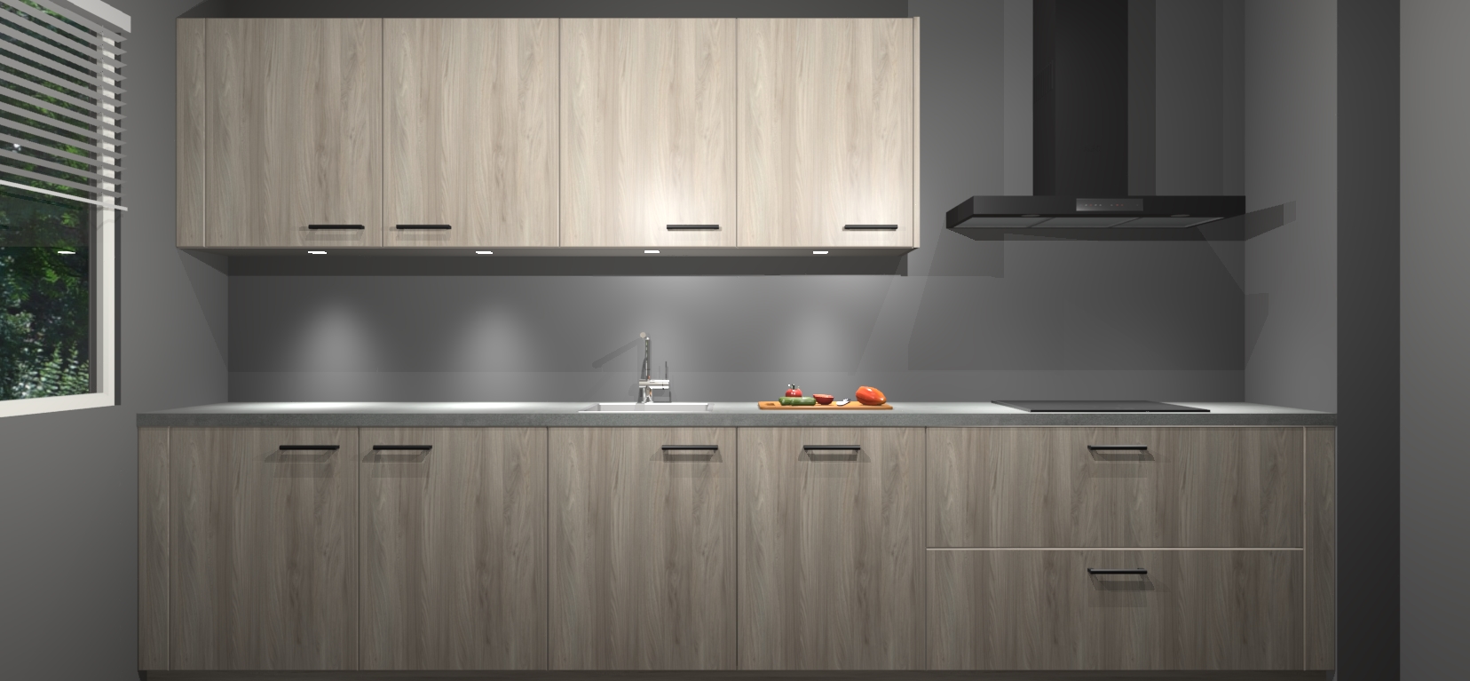 Een stijlvolle en praktische keuken als deze mag gezien worden. Dankzij de prachtige Olm matte afwerking wordt de keuken gemakkelijk het middelpunt van uw huis - hij ziet er geweldig uit onder allerlei lichtomstandigheden, van dag tot nacht!