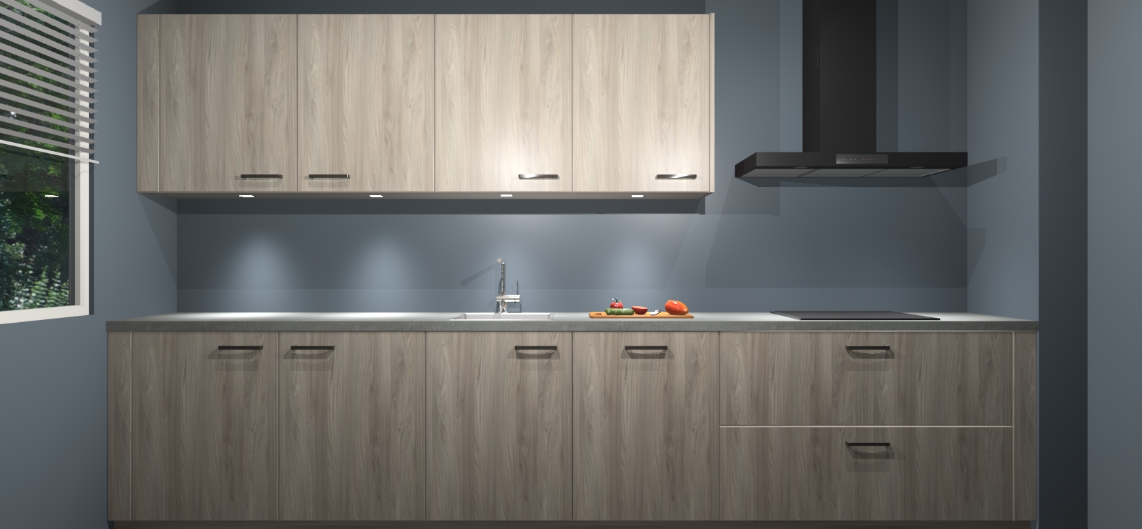 Een stijlvolle en praktische keuken als deze mag gezien worden. Dankzij de prachtige Olm matte afwerking wordt de keuken gemakkelijk het middelpunt van uw huis - hij ziet er geweldig uit onder allerlei lichtomstandigheden, van dag tot nacht!