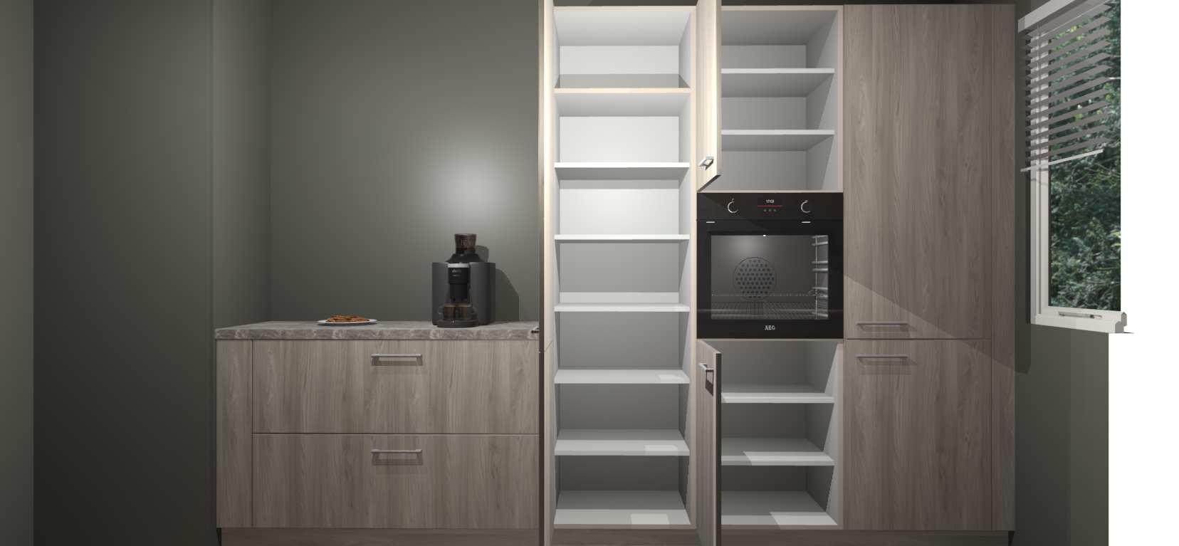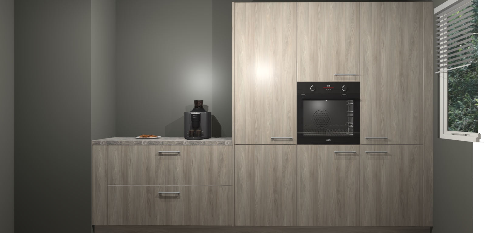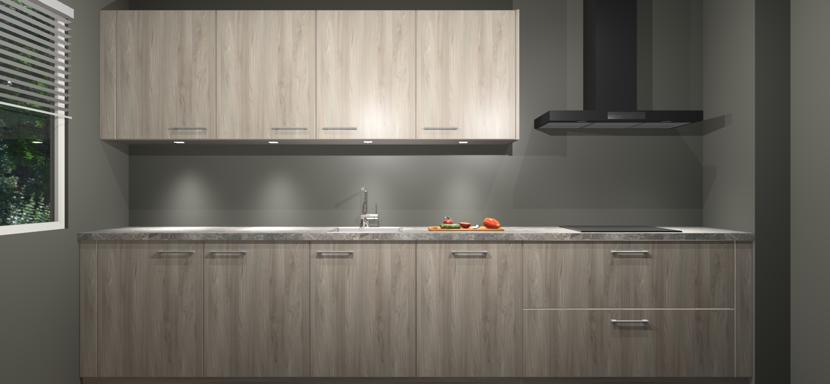 Een stijlvolle en praktische keuken als deze mag gezien worden. Dankzij de prachtige Olm matte afwerking wordt de keuken gemakkelijk het middelpunt van uw huis - hij ziet er geweldig uit onder allerlei lichtomstandigheden, van dag tot nacht!