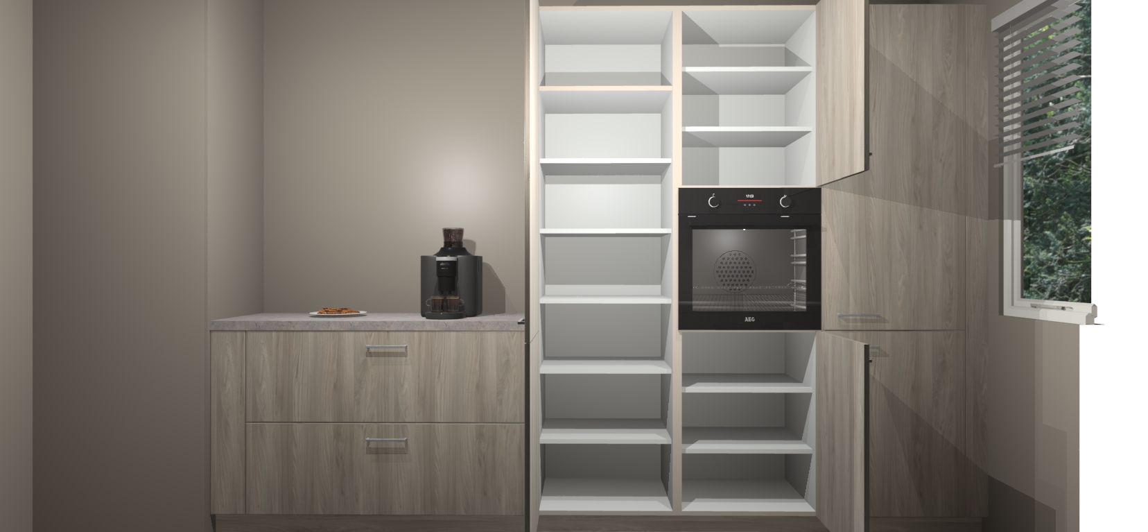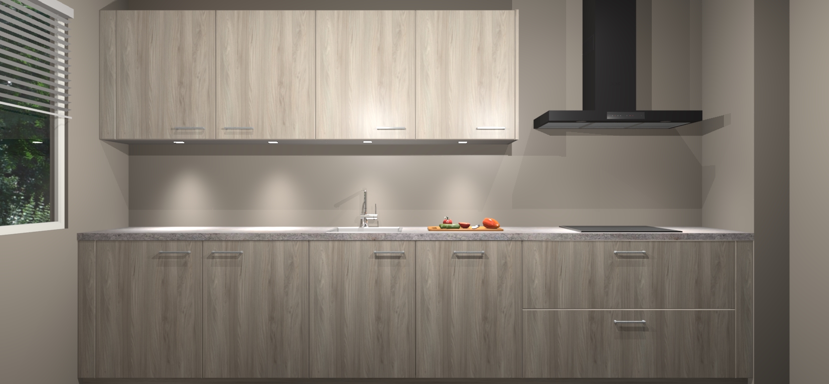 Een stijlvolle en praktische keuken als deze mag gezien worden. Dankzij de prachtige Olm matte afwerking wordt de keuken gemakkelijk het middelpunt van uw huis - hij ziet er geweldig uit onder allerlei lichtomstandigheden, van dag tot nacht!