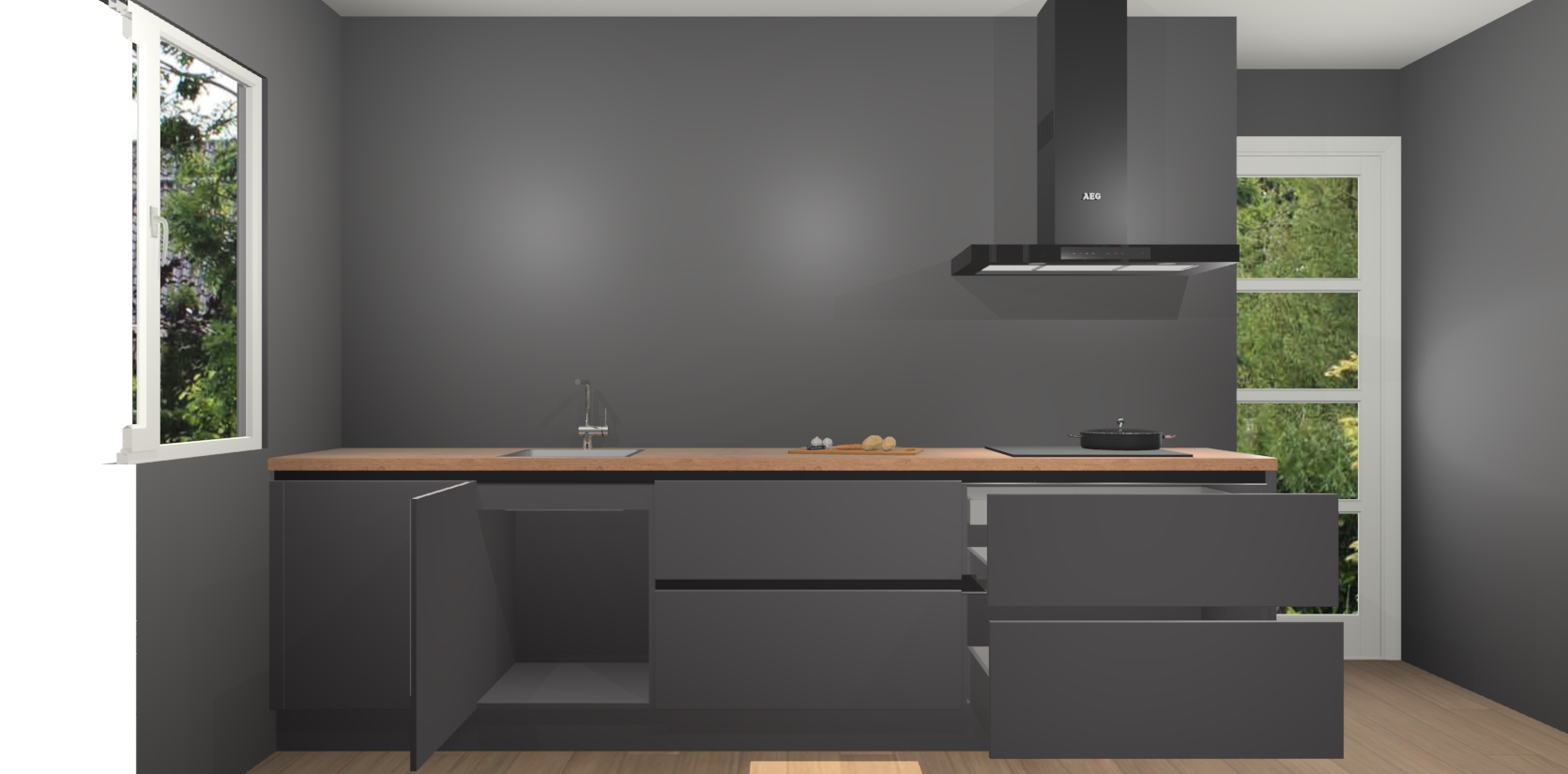 De softclose deuren openen en sluiten is ook heel eenvoudig - geniet van een moeiteloze keukenervaring, zelfs als er kinderen rondlopen. Voor extra gemak bij het plaatsen van uw bestelling bieden we ook een upgrade naar een kookplaat met geïntegreerde afzuiging.