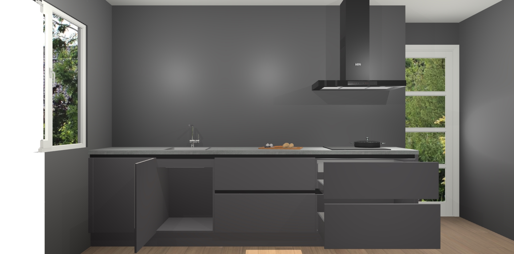 De softclose deuren openen en sluiten is ook heel eenvoudig - geniet van een moeiteloze keukenervaring, zelfs als er kinderen rondlopen. Voor extra gemak bij het plaatsen van uw bestelling bieden we ook een upgrade naar een kookplaat met geïntegreerde afzuiging.