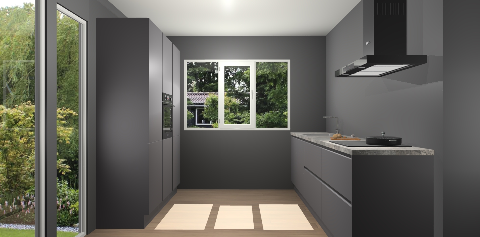 De softclose deuren openen en sluiten is ook heel eenvoudig - geniet van een moeiteloze keukenervaring, zelfs als er kinderen rondlopen. Voor extra gemak bij het plaatsen van uw bestelling bieden we ook een upgrade naar een kookplaat met geïntegreerde afzuiging.