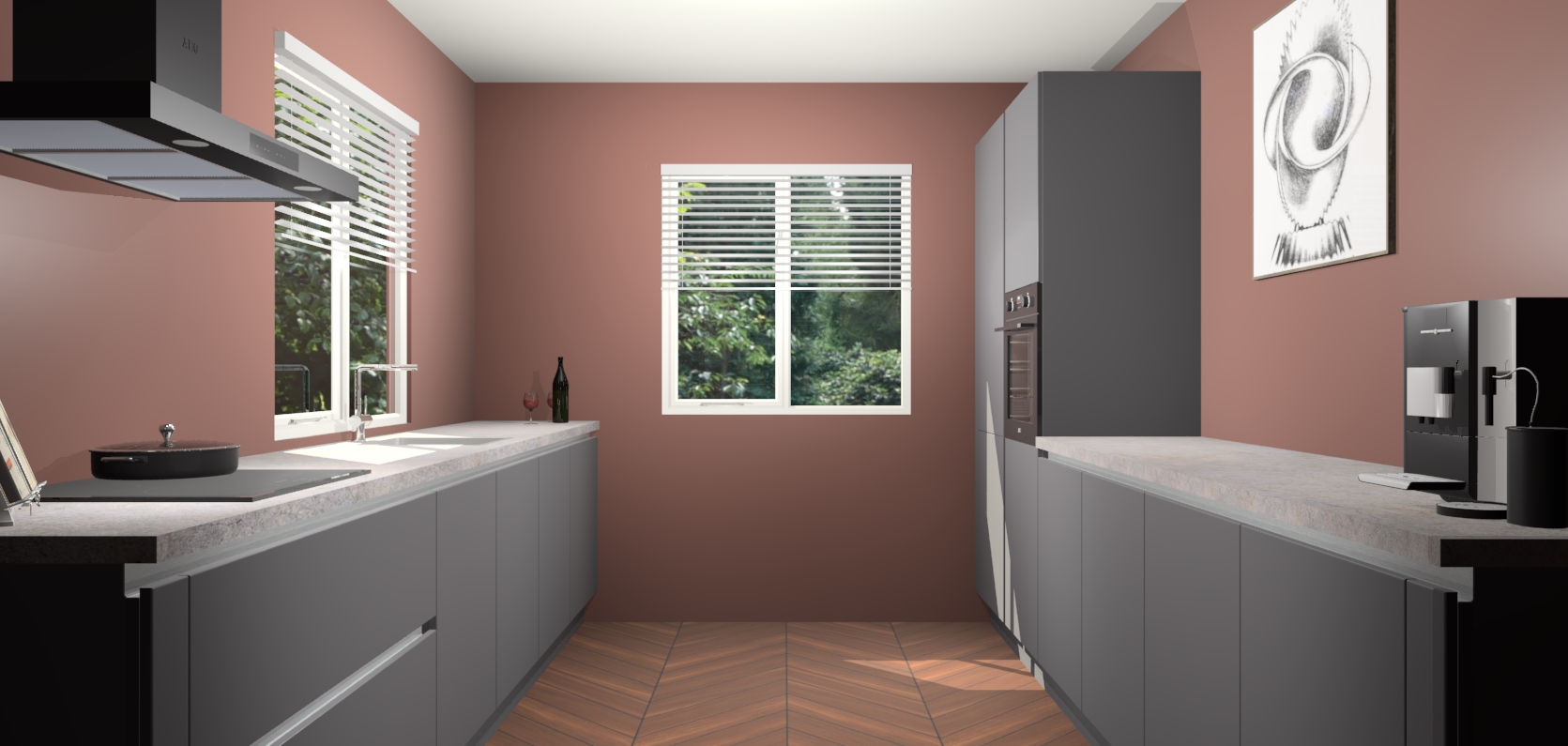 Welkom bij de Onyxgrijze greeploze keuken Lusaka. Deze prachtige keuken zal de komende jaren het middelpunt van de belangstelling in uw huis zijn. Uitgerust met vijf inbouwapparaten komt u nooit kookgereedschap tekort. Bovendien geeft de warme houtlook elke ruimte een uitnodigende en tijdloze uitstraling.