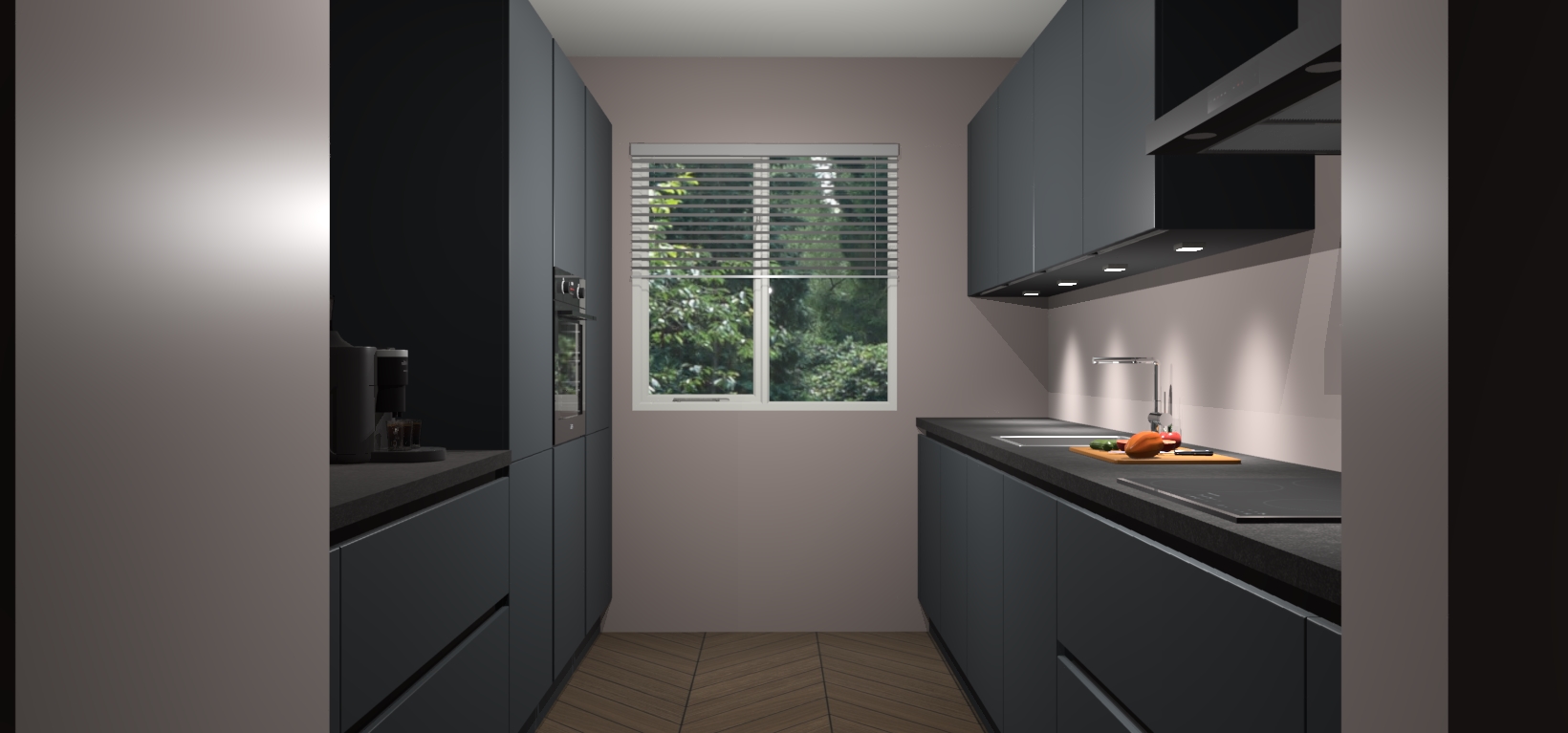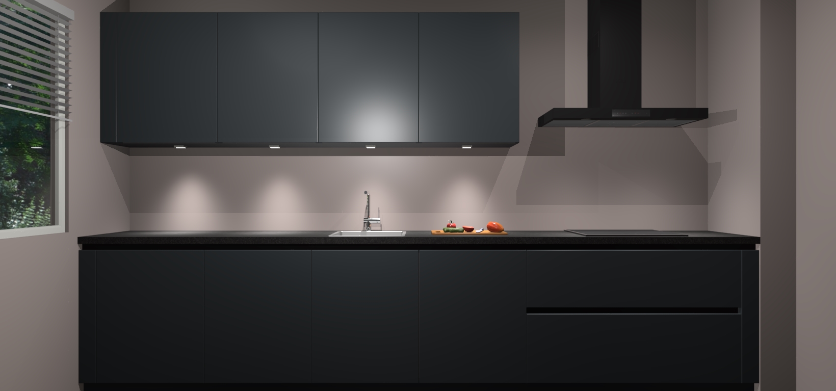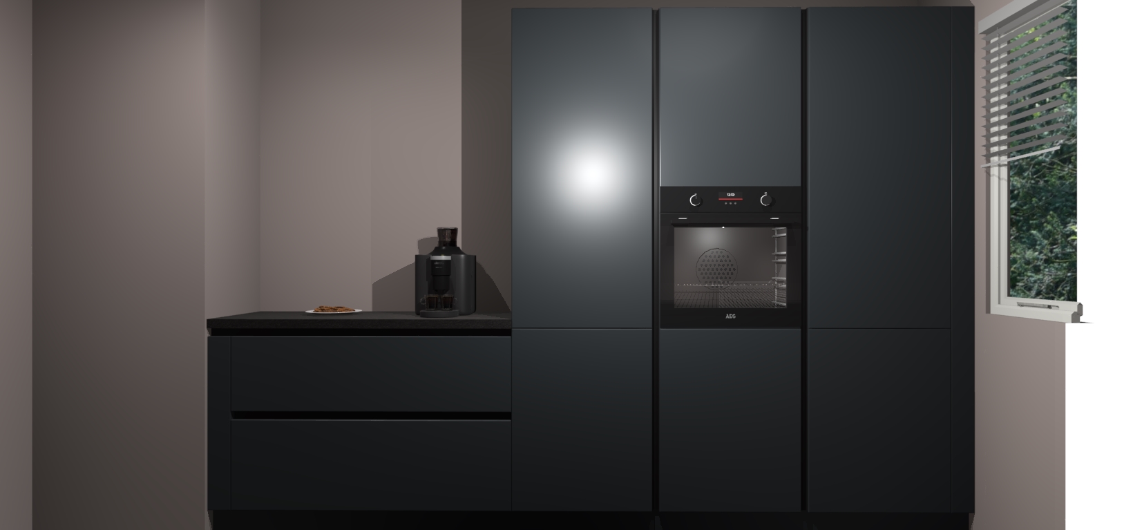 Een stijlvolle en praktische keuken als deze mag gezien worden. Dankzij de prachtige Onyxgrijze matte afwerking wordt de keuken gemakkelijk het middelpunt van uw huis - hij ziet er geweldig uit onder allerlei lichtomstandigheden, van dag tot nacht!